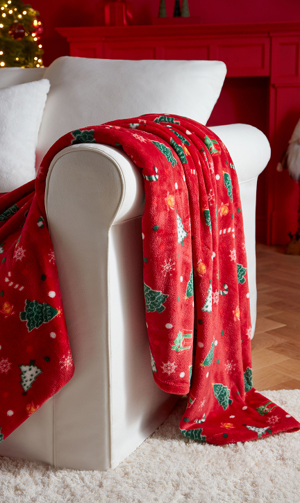 Descubre mantas suaves y cojines con formas y motivos navideños.