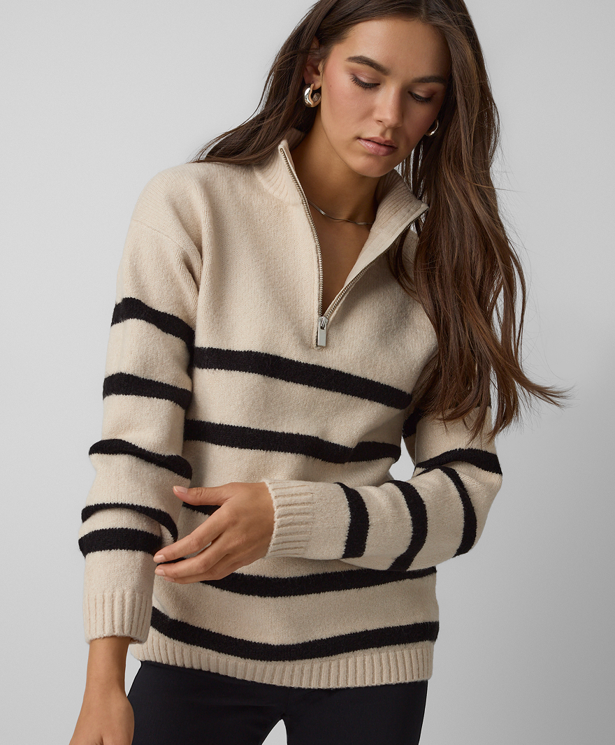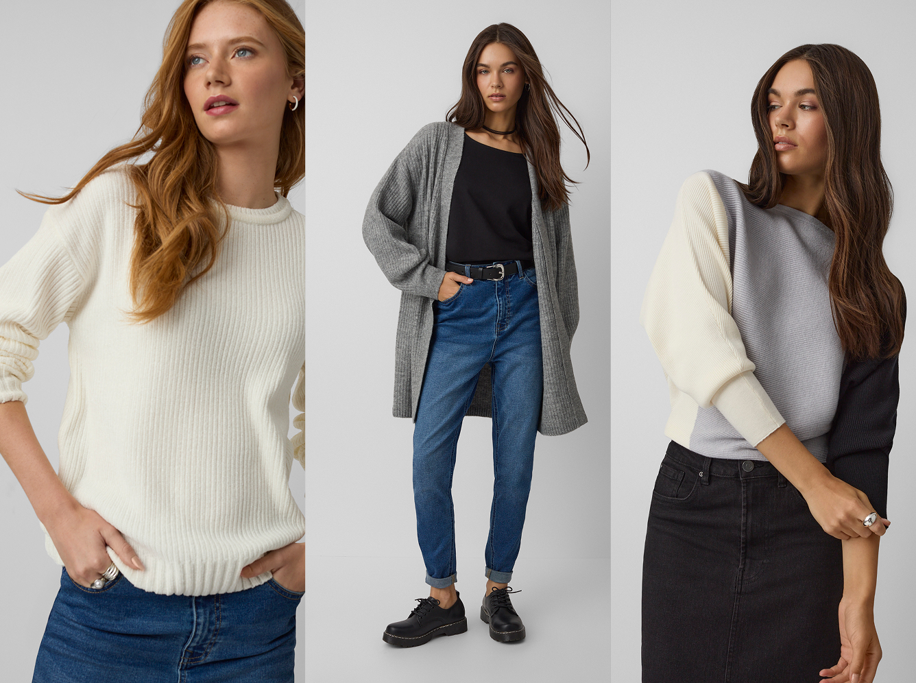 Las combinaciones monocromáticas están de vuelta, y en Pepco encontrarás prendas de punto modernas y resistentes en colores discretos, fáciles de mezclar: como marrón, azul marino o combinaciones de ambos. Camisetas de manga larga cómodas que funcionan tanto bajo un blazer o como pieza central del look. Combínalas con pantalones clásicos, una bufanda llamativa o un cinturón, y logra un estilo sencillo pero lleno de estilo.