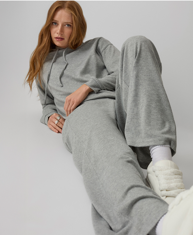 Inspirada en los años 90, la colección rescata el estilo relajado y libre de esa época con sudaderas oversize, pantalones de talle alto con pernera ancha y crop tops renovados para el día a día. Son prendas que se adaptan tanto a un estilo informal como a combinaciones más elegantes, siempre con un aire actual.
