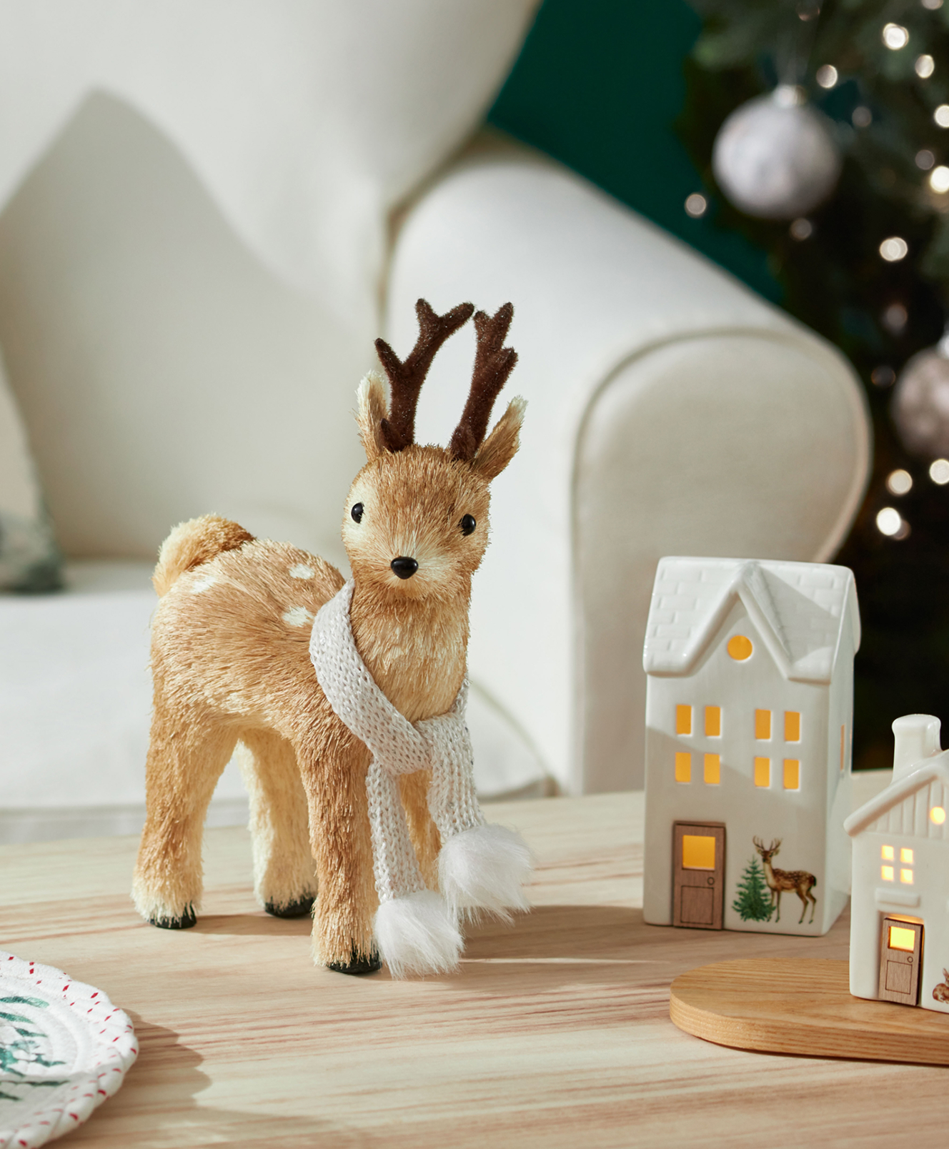 con un mini árbol de Navidad en el interior