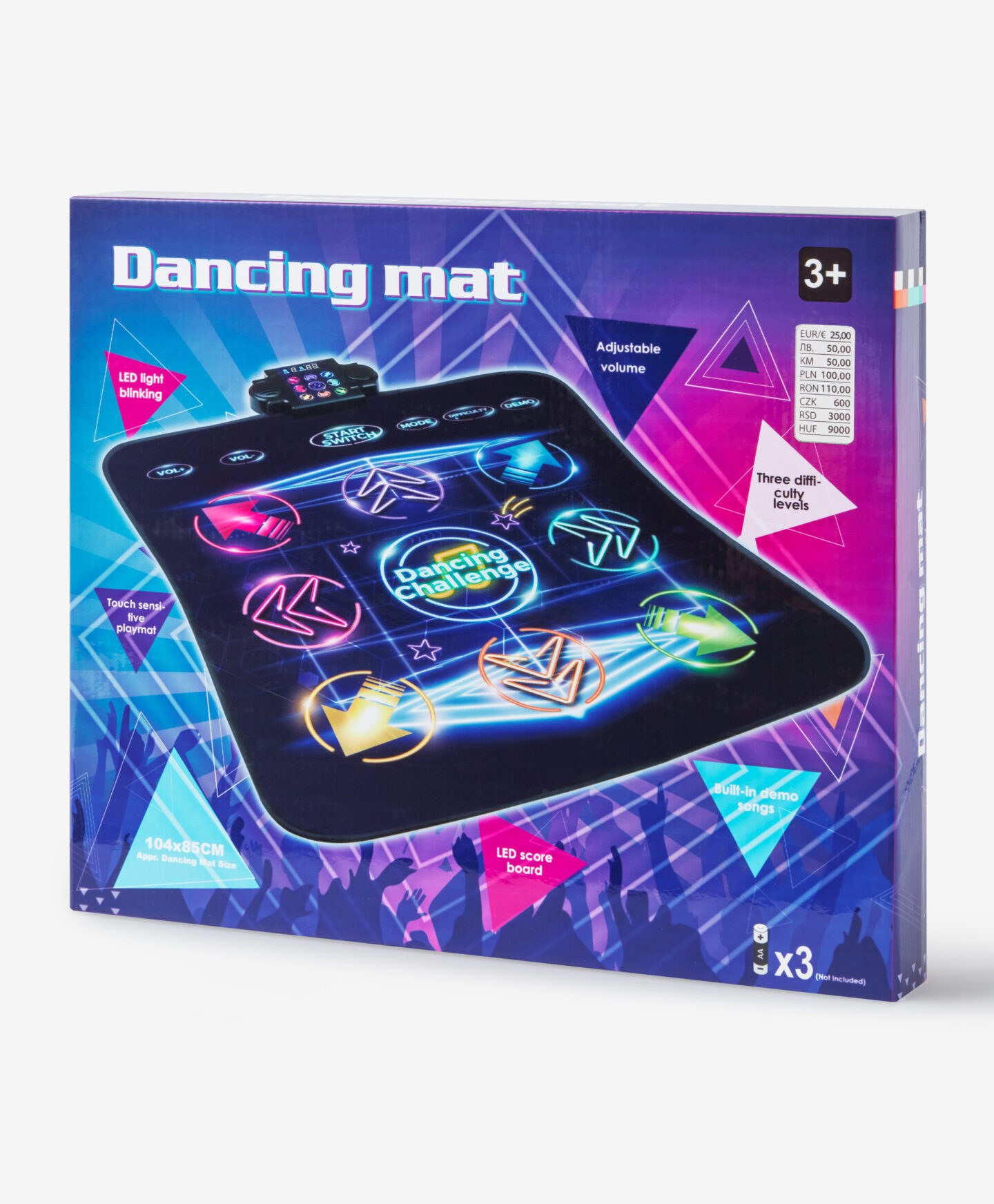 La alfombra electrónica de baile combina música y movimiento. Los jugadores deben seguir el ritmo de las luces, ¡una forma divertida de moverse y bailar! La mezcla perfecta entre ritmo, ejercicio y diversión, con canciones variadas y volumen ajustable.