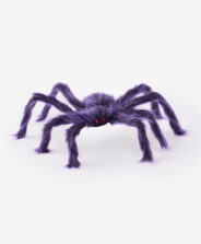 La araña peluda morada y negra es una decoración única que añade un toque de terror a Halloween. Sus patas flexibles permiten colocarla en cualquier posición, y sus ojos rojos y penetrantes la hacen aún más inquietante. También está disponible en otros colores.