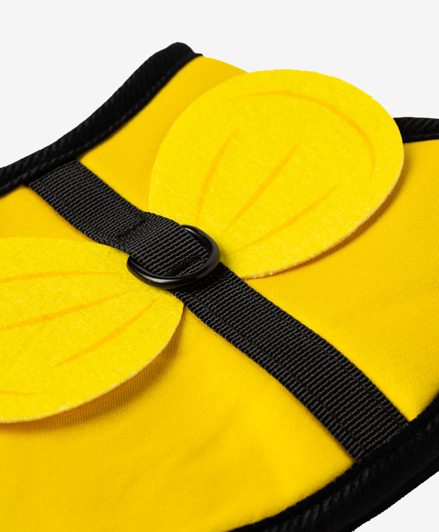 El arnés para mascota con alas combina funcionalidad y un diseño adorable que no pasará desapercibido. Las alas de abeja y el característico estampado a rayas le dan un aspecto divertido y original que hará que tu mascota destaque en cada paseo. Fabricado con material suave y resistente, proporciona comodidad y seguridad durante las actividades diarias. El cierre ajustable permite adaptarlo a perros de diferentes tamaños y razas.