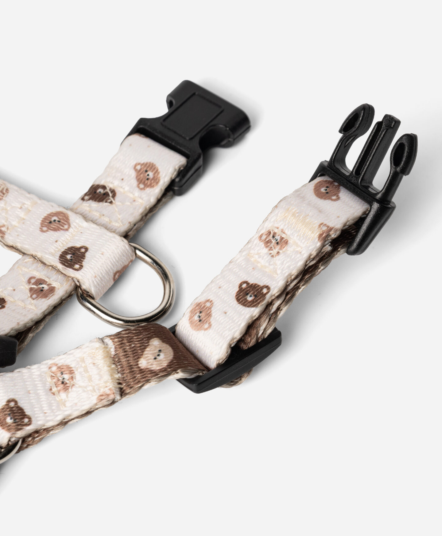 Arnés para perro con estampado de osos en talla M. Cómodo y seguro para los paseos diarios. Fabricado con material resistente. El estampado añade un toque encantador. Disponible en varias tallas.