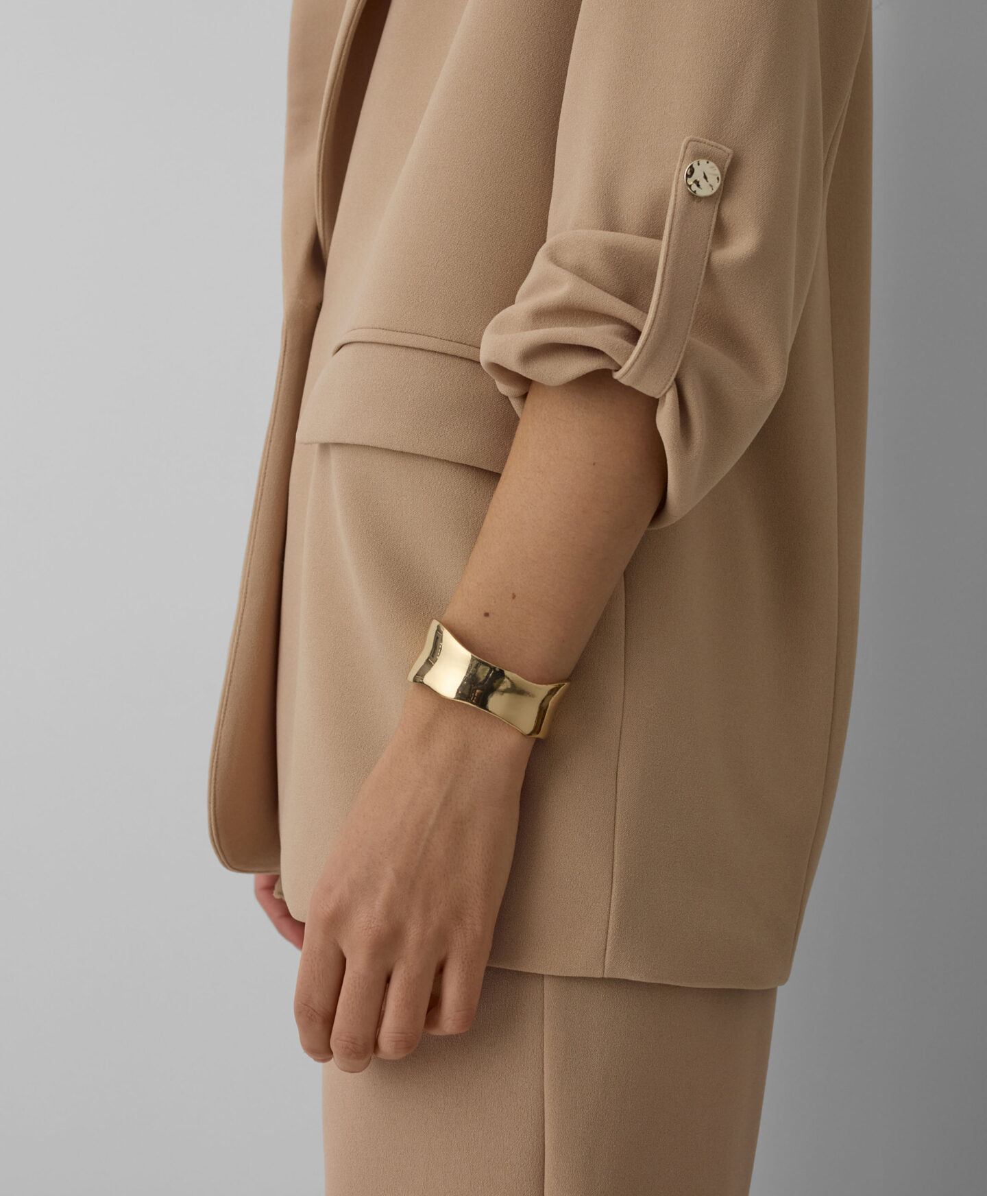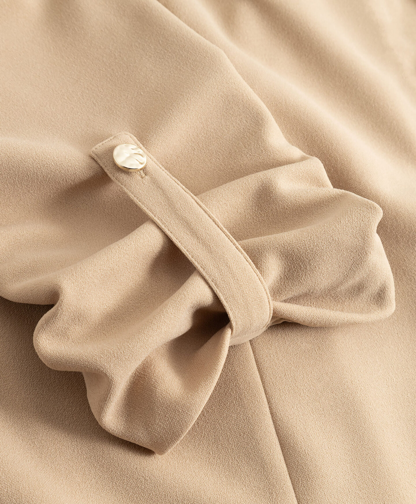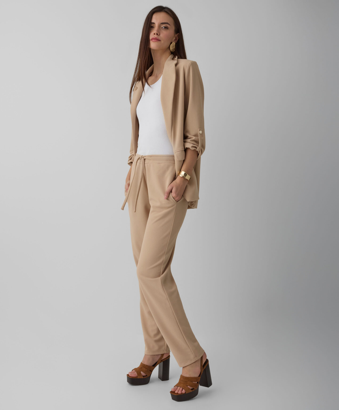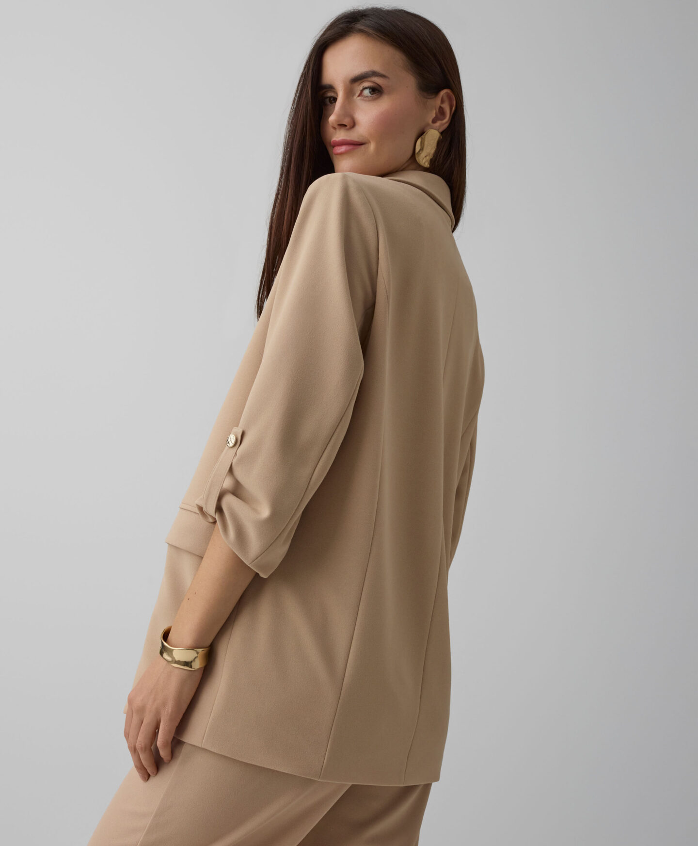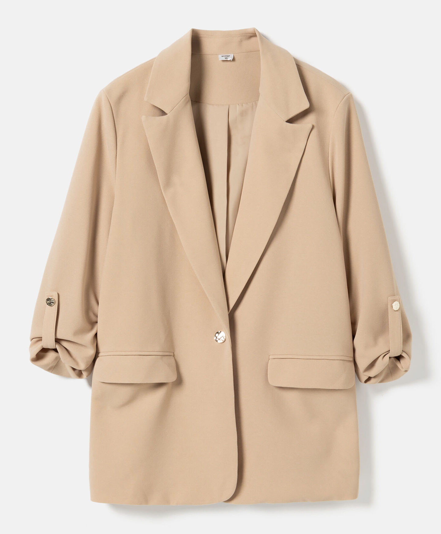 La blazer es una prenda clásica imprescindible en cualquier armario. Combina perfectamente con el pantalón de la colección. Se puede llevar sobre un vestido elegante o con una camiseta más casual. Es ideal para la oficina, reuniones o eventos familiares. El color beige combina fácilmente con muchos estilos.