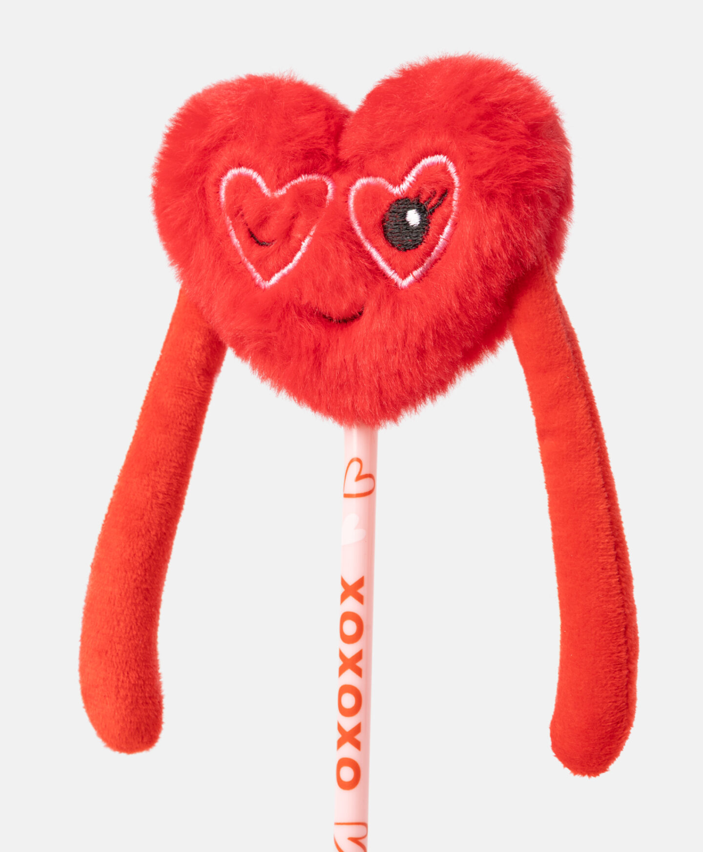 Bolígrafo con corazón decorativo, ideal para escribir mensajes especiales. El adorno de peluche en color rojo intenso aporta un toque divertido. Perfecto para el colegio, la oficina o como detalle de San Valentín.