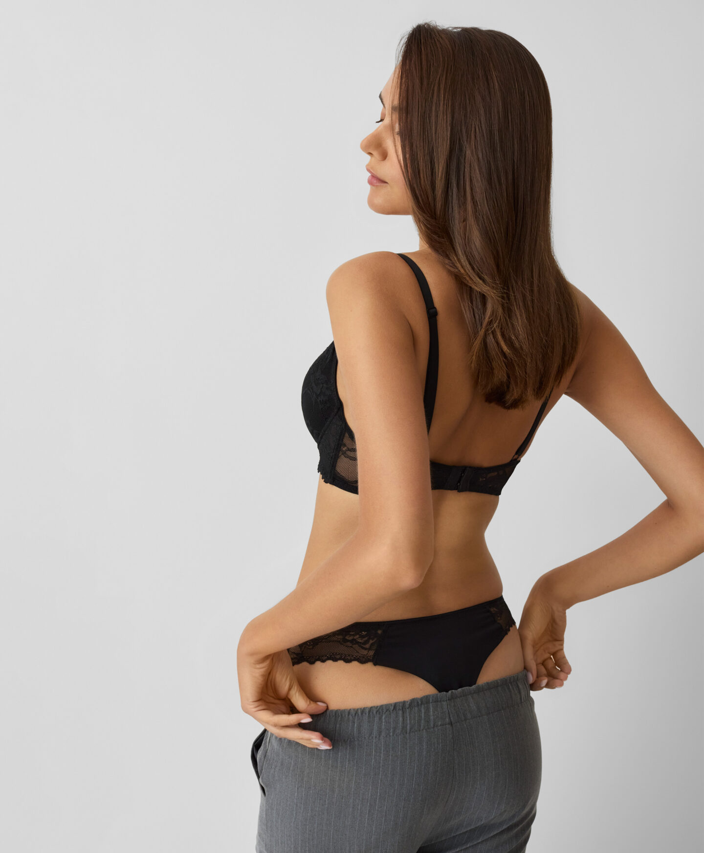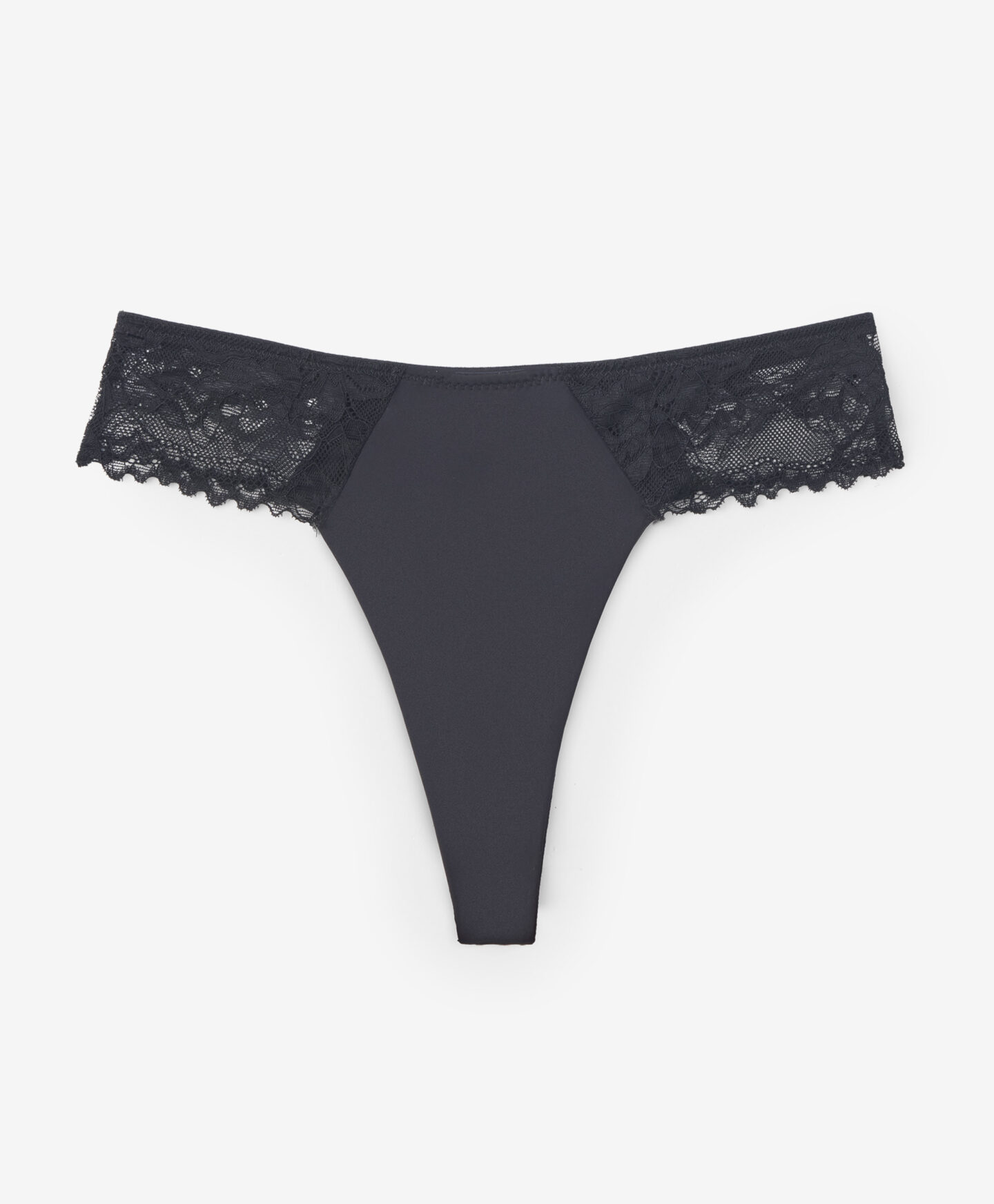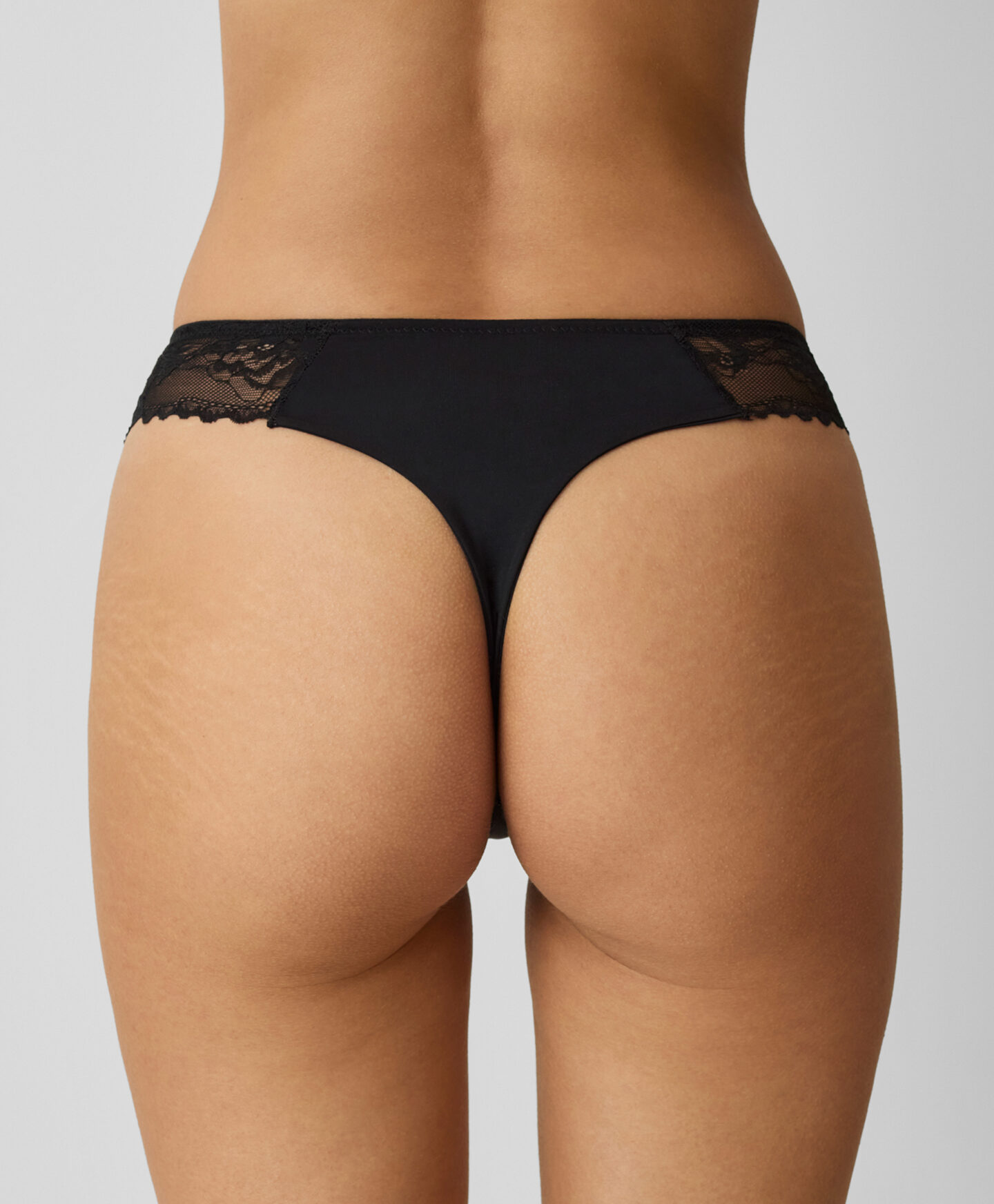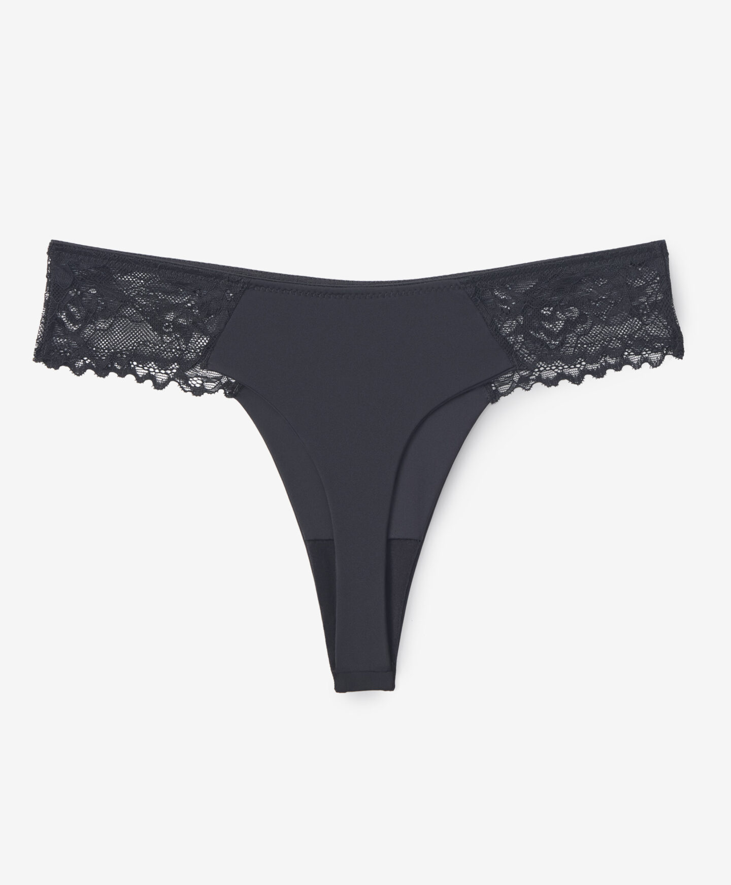 Esta braguita tipo thong con delicado encaje se adapta a la perfección bajo prendas ajustadas, eliminando cualquier marca. Sus detalles de encaje aportan un toque romántico y sofisticado. Una pieza que combina elegancia, sensualidad y comodidad en cada detalle.