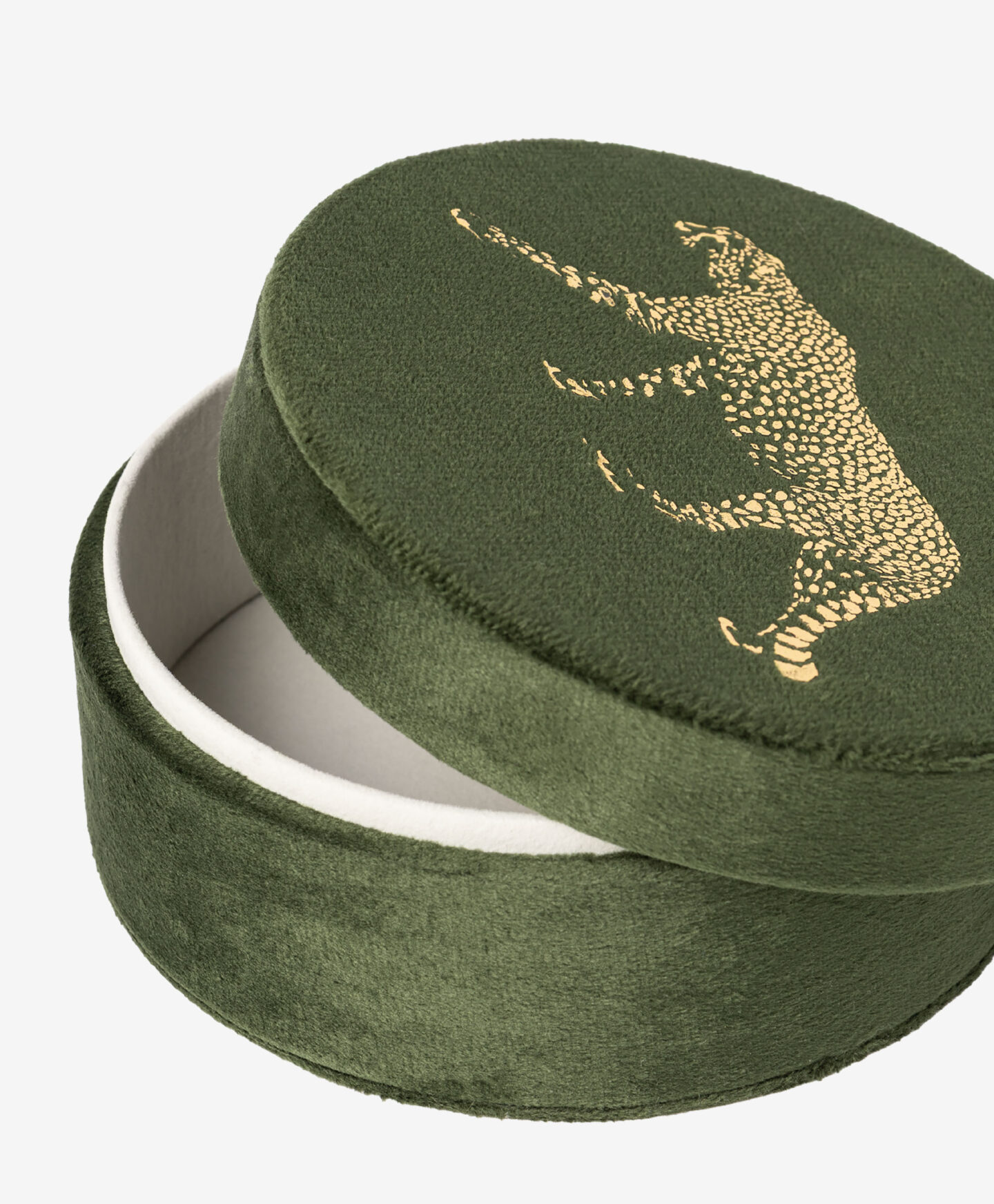 La caja bordada destaca por su originalidad y su diseño cuidado. Es ideal para guardar joyas u otros pequeños objetos especiales. El bordado con estampado de leopardo aporta encanto y un toque decorativo muy llamativo.