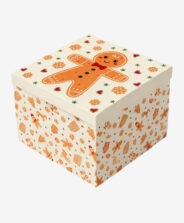 La caja de cartón beige está decorada con un diseño festivo que le aporta un toque elegante. Es perfecta para presentar galletas, dulces o pequeños regalos, creando un conjunto muy cuidado. Un envoltorio así realza la importancia del detalle y lo hace aún más especial.