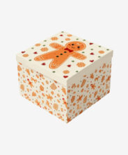 La caja de cartón beige está decorada con un diseño festivo que le aporta un toque elegante. Es perfecta para presentar galletas, dulces o pequeños regalos, creando un conjunto muy cuidado. Un envoltorio así realza la importancia del detalle y lo hace aún más especial.