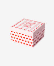 Caja pequeña de San Valentín con corazones, perfecta para regalos pequeños. Cuenta con tapa práctica y un diseño romántico. Ideal también para almacenaje. Disponible en varios tamaños y diseños.