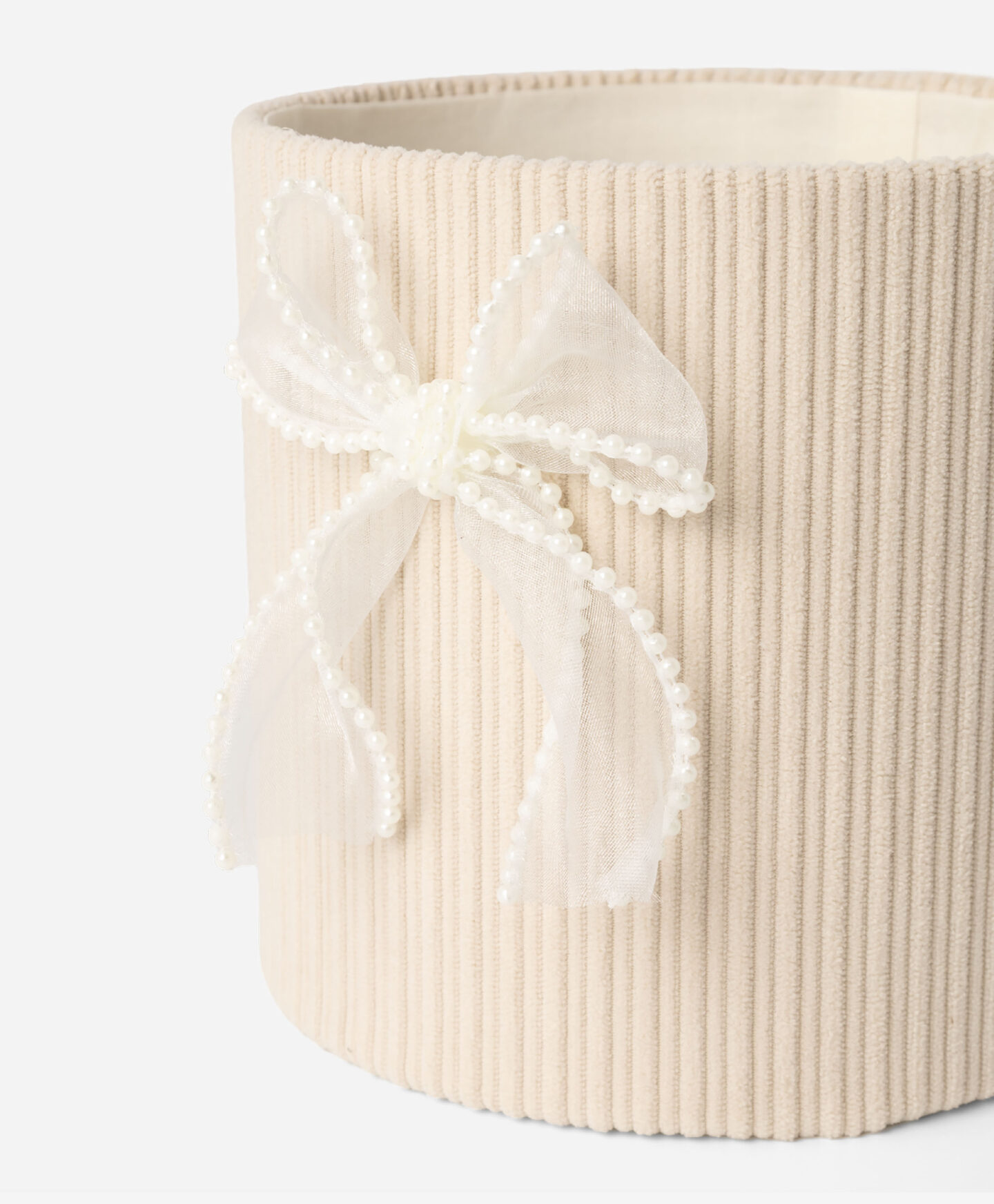 La caja redonda grande con lazo es un elemento decorativo práctico y elegante para cualquier interior. Ideal para guardar cosméticos u otros accesorios pequeños. El lazo decorativo aporta un toque especial y queda perfecta sobre una estantería, cómoda o escritorio. Al no tener tapa facilita el uso diario.