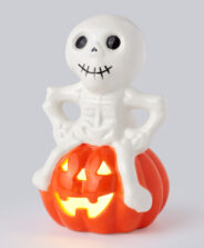 La calavera sentada sobre una calabaza LED es una decoración encantadora, perfecta para Halloween. La calabaza emite una luz suave que crea un ambiente cálido y mágico. Ideal para decorar interiores, ventanas o chimeneas.