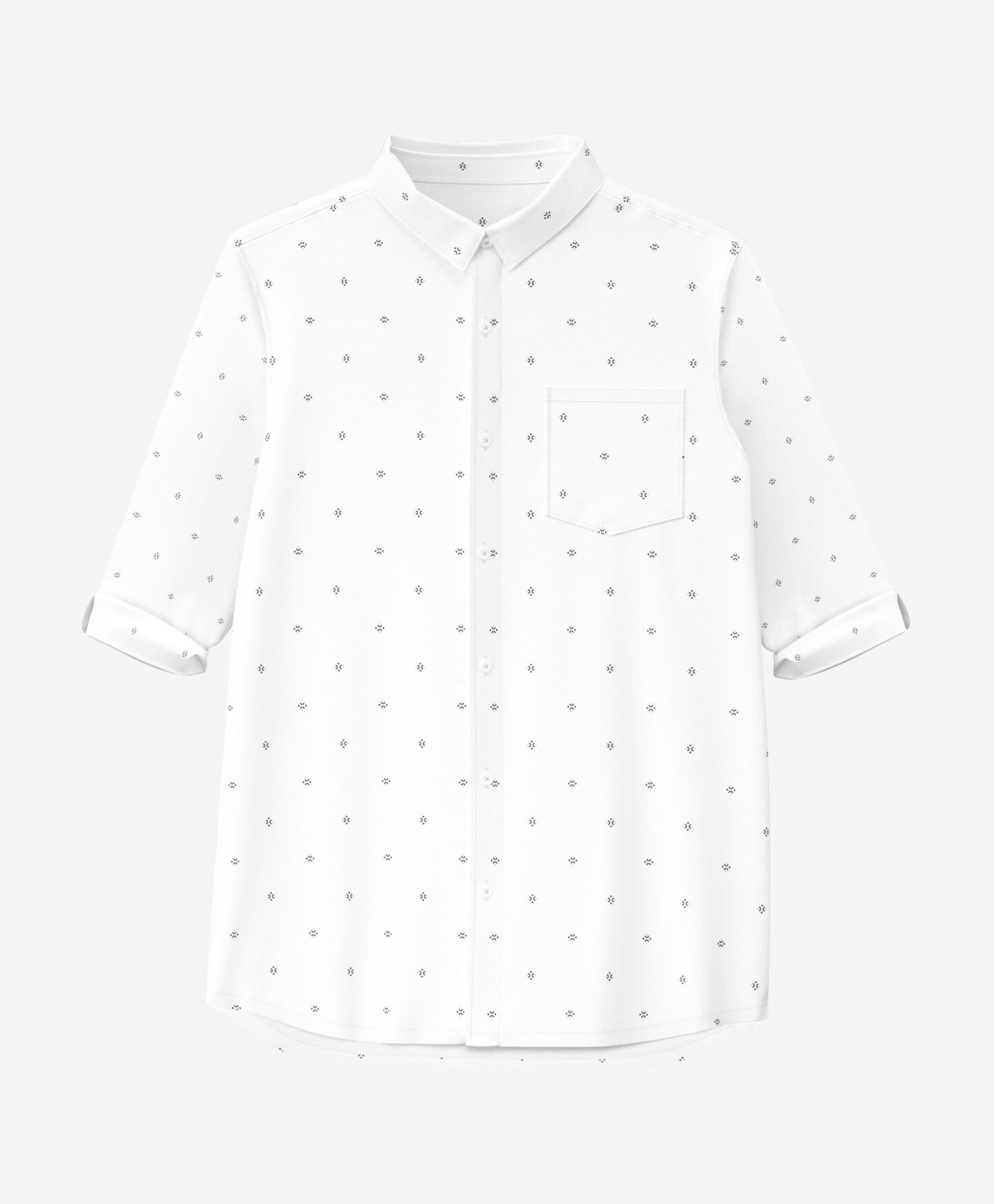 Camisa 100% algodón con estampado, perfecta para ocasiones especiales. El cuello y el diseño geométrico aportan un toque elegante. Combinada con un jersey o cárdigan, crea un look ideal para reuniones familiares o actos escolares. El tejido transpirable garantiza confort durante todo el día.