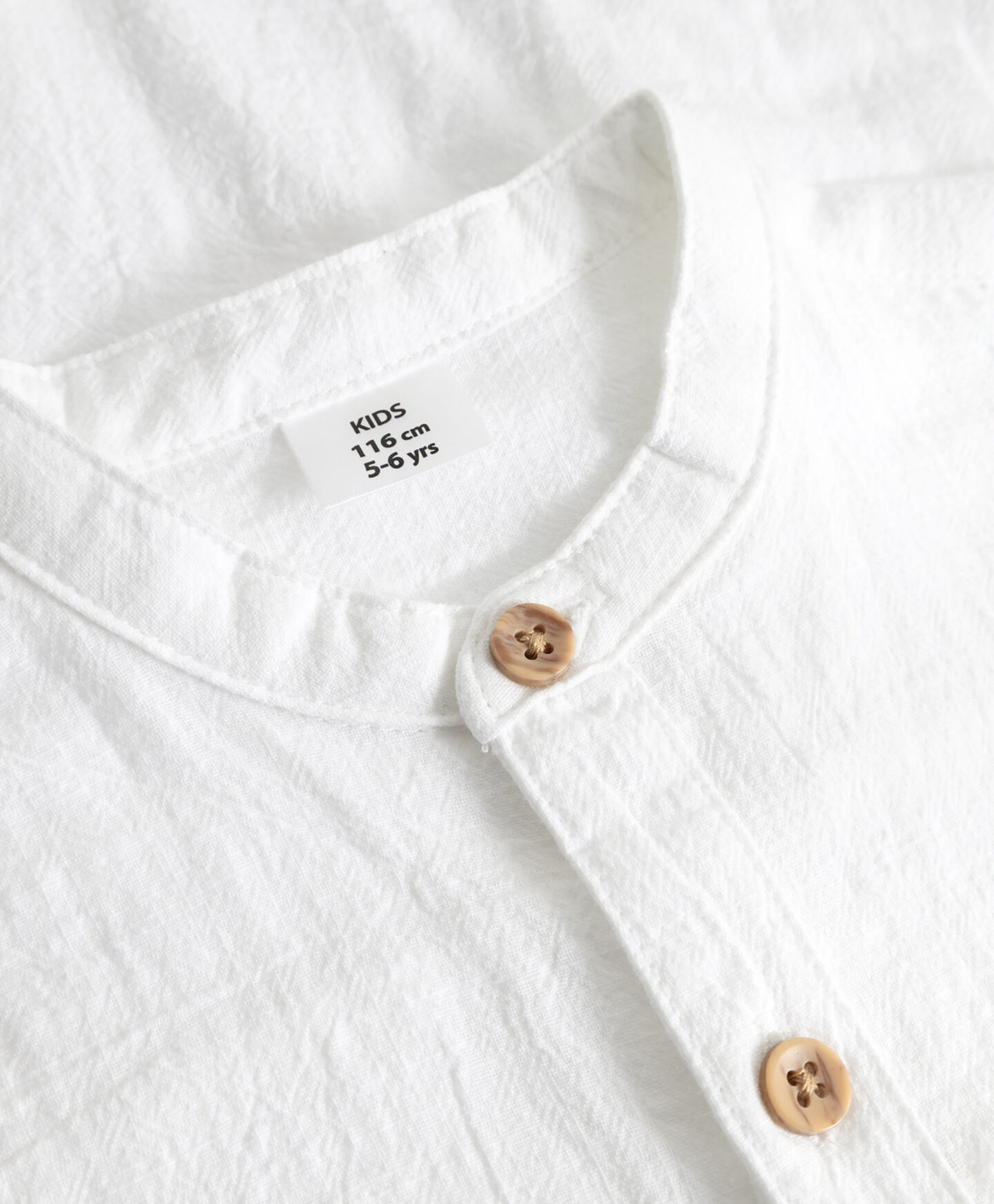 La camisa 100% algodón es una opción elegante para reuniones familiares. El algodón natural garantiza transpirabilidad y comodidad. Los botones marrones en contraste aportan un toque moderno. El pequeño cuello mao refuerza su estilo actual. Las mangas cortas son perfectas para días cálidos. El color versátil combina con muchos pantalones.