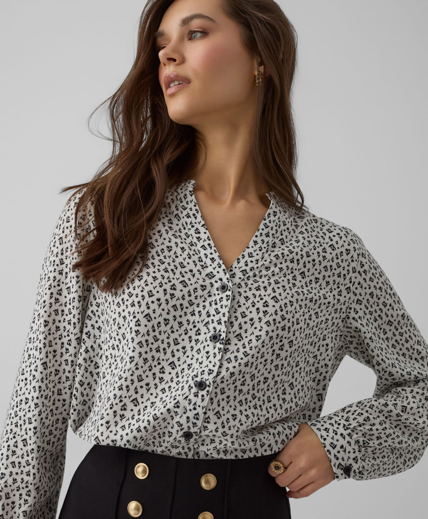 La camisa 100% viscosa es suave y transpirable, ideal para cualquier temporada. Presenta un diseño sin cuello, con un acabado moderno y minimalista. Además, encaja en conjuntos casuales y también más formales. Es una opción estilosa para el día a día, con elegancia y comodidad.