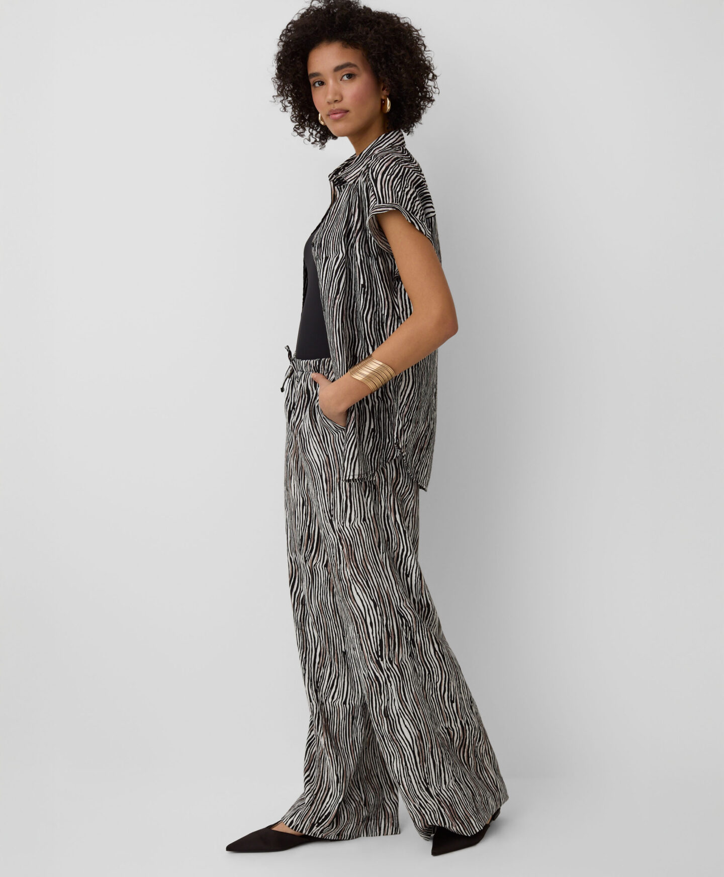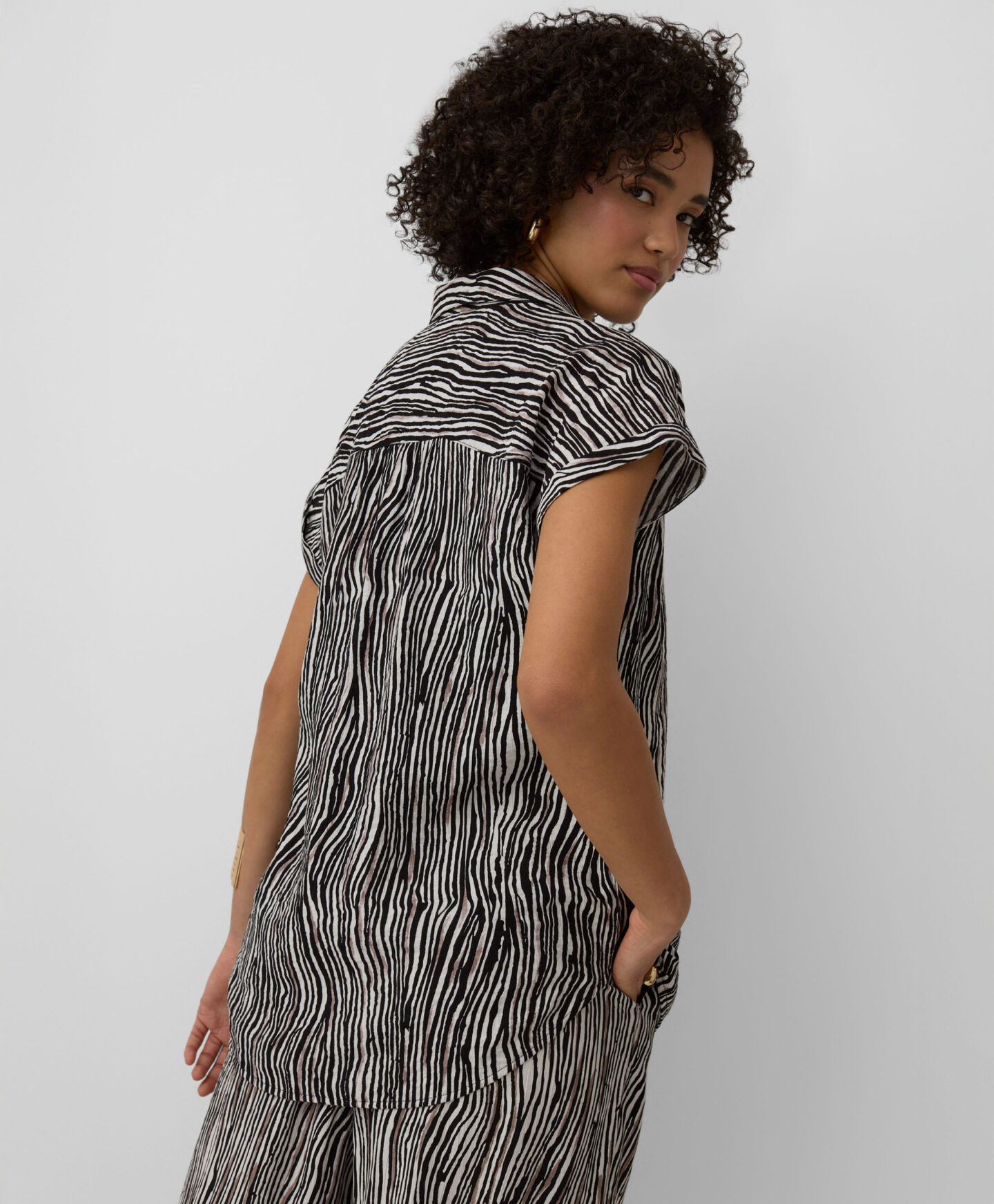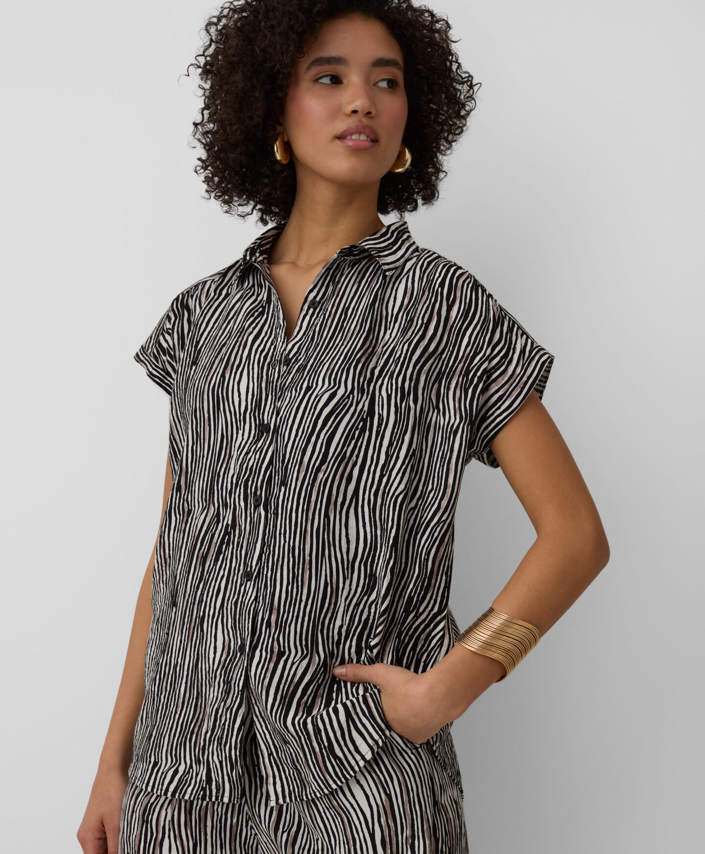 La camisa estampada 100% viscosa de manga corta es ideal para los días de calor. Es ligera, transpirable y agradable al tacto. El tejido suave envuelve con comodidad durante todo el día. Combina con pantalón corto, vaquero o pantalón más elegante.