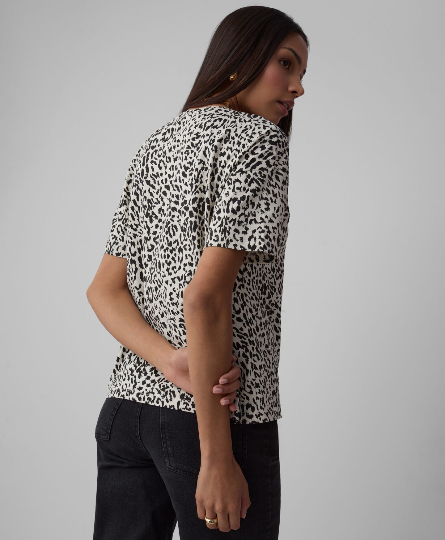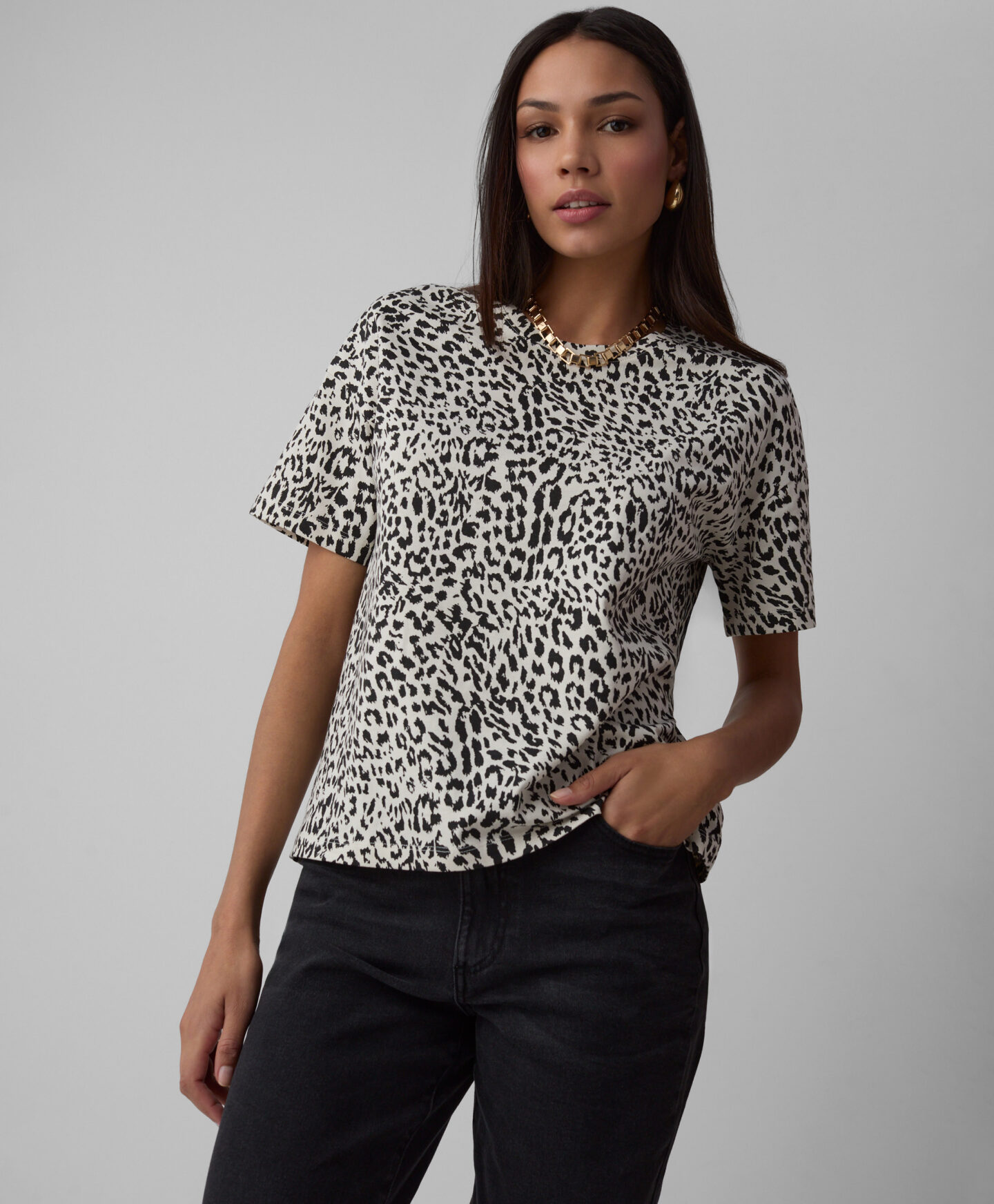 Una camiseta 100% algodón con estampado de leopardo es suave, transpirable y agradable para la piel. Su tejido natural asegura confort durante todo el día y la hace perfecta para llevar todo el año. Ideal bajo un cárdigan, una americana o una sudadera en épocas de más frío.