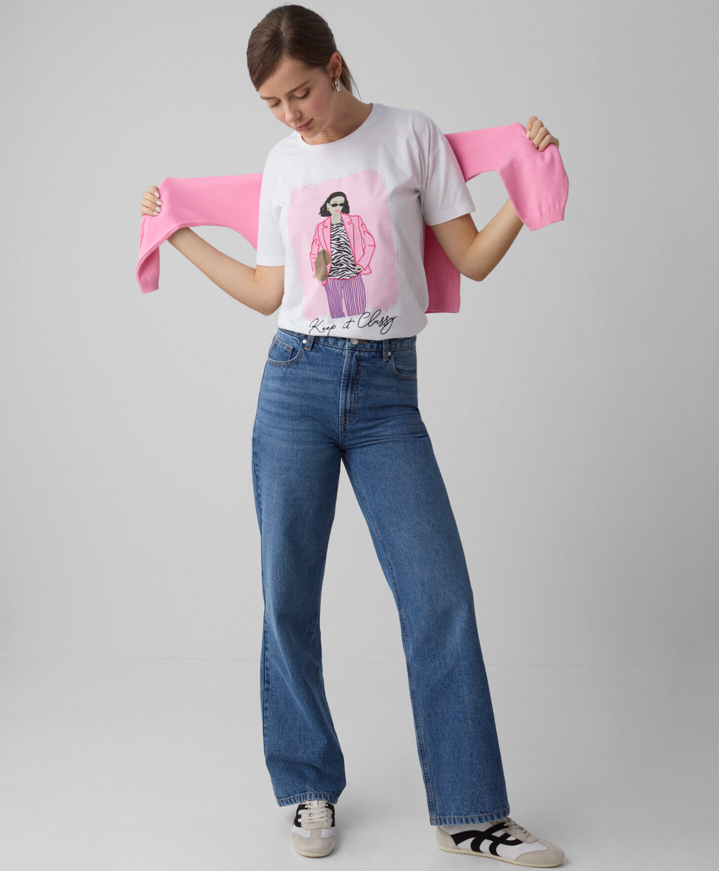Una camiseta 100% algodón es agradable para la piel, transpirable y fácil de cuidar. El tejido natural asegura confort durante todo el día, en cualquier situación. La camiseta incluye un estampado estiloso que le aporta un toque original. Ideal para mujeres que quieren expresar su personalidad a través de su ropa.
