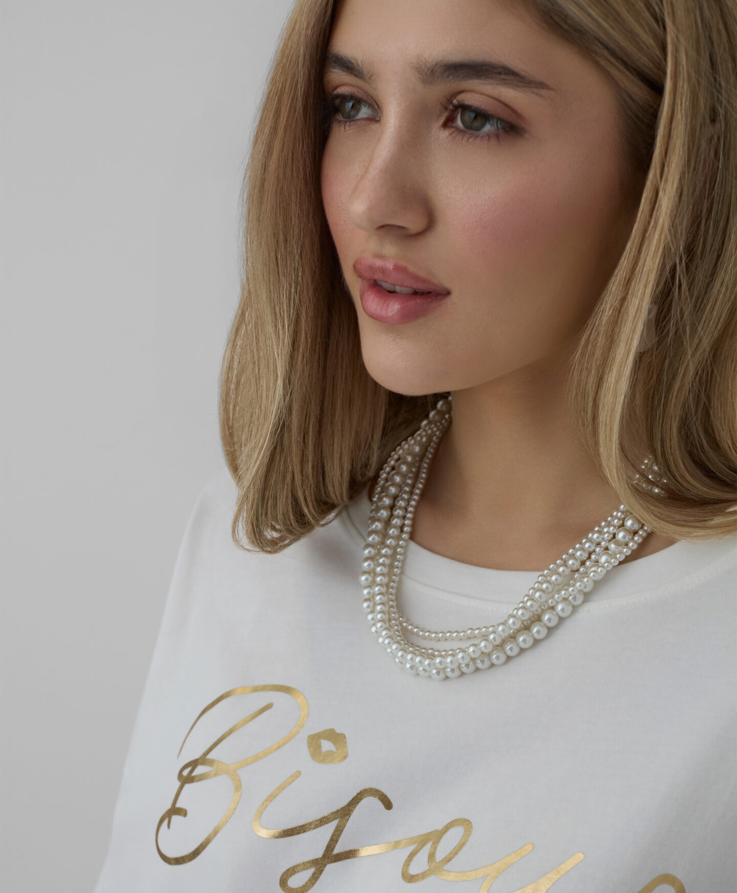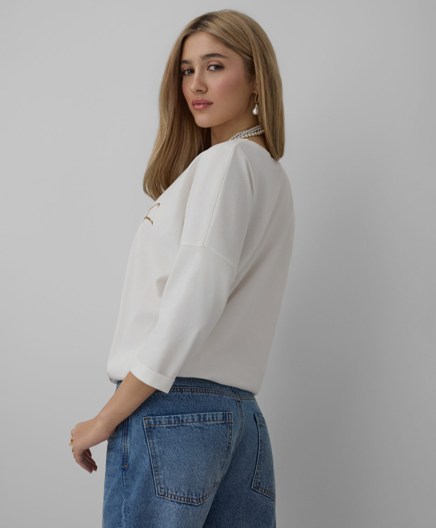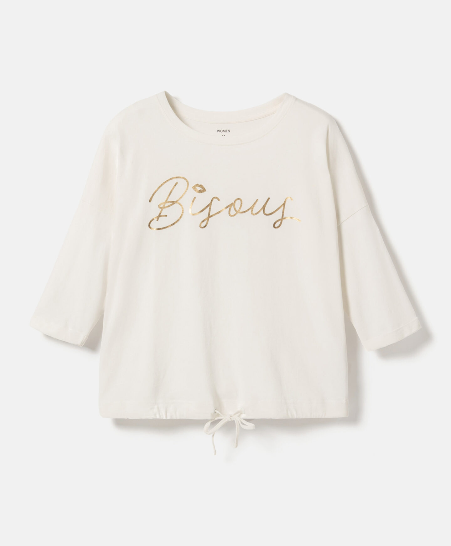 La camiseta 100% algodón con lazada frontal es suave y agradable para la piel. El tejido transpirable se adapta cómodamente al cuerpo. El corte holgado permite libertad de movimiento. Combina con vaqueros para un conjunto diario equilibrado.