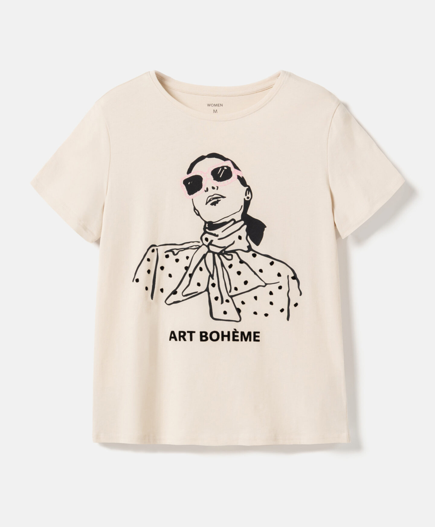 La camiseta de manga corta con estampado es una opción con estilo para quienes buscan diseños originales. El tejido 100% algodón ofrece una sensación agradable sobre la piel. Es transpirable y cómoda para distintos conjuntos.