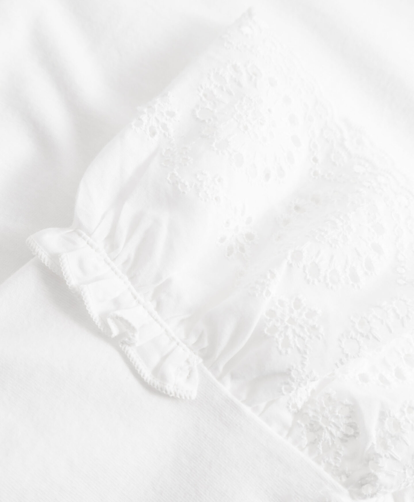 La camiseta 100% algodón destaca por sus detalles llenos de estilo. En lugar de mangas clásicas, incorpora volantes suaves que caen con delicadeza y aportan ligereza al look. El corte ligeramente holgado permite jugar y moverse con libertad. El tejido 100% algodón es transpirable, suave y agradable incluso para pieles sensibles. Perfecta para los días de verano.