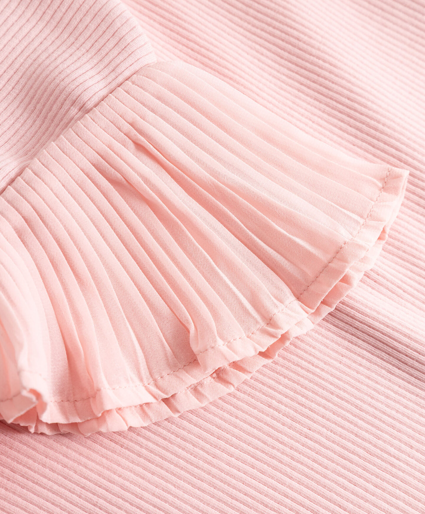 La camiseta en tono pastel combina comodidad y estilo. El tejido acanalado resulta cómodo al llevarlo. Las mangas de gasa plisada aportan elegancia y ligereza. El contraste con el cuerpo liso crea un diseño llamativo. Es perfecta para comidas familiares o encuentros con amigos. Combina muy bien con falda plisada o pantalón a juego.