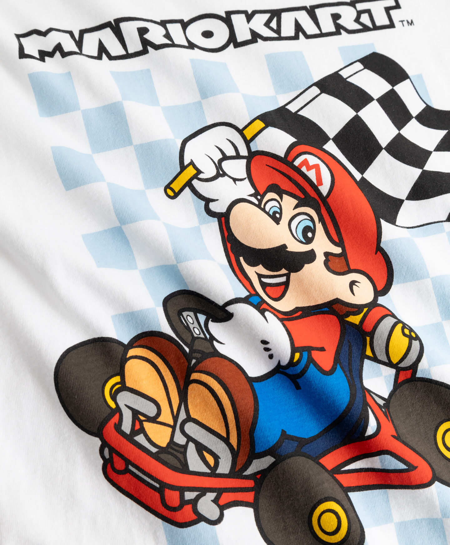 Camiseta blanca 100% algodón de Super Mario pensada para fans del icónico juego de Nintendo. El estampado grande en la parte delantera llama la atención. El corte clásico ofrece libertad de movimiento. Queda genial con vaqueros, pantalones deportivos o pantalón corto. Es una opción versátil para el día a día.