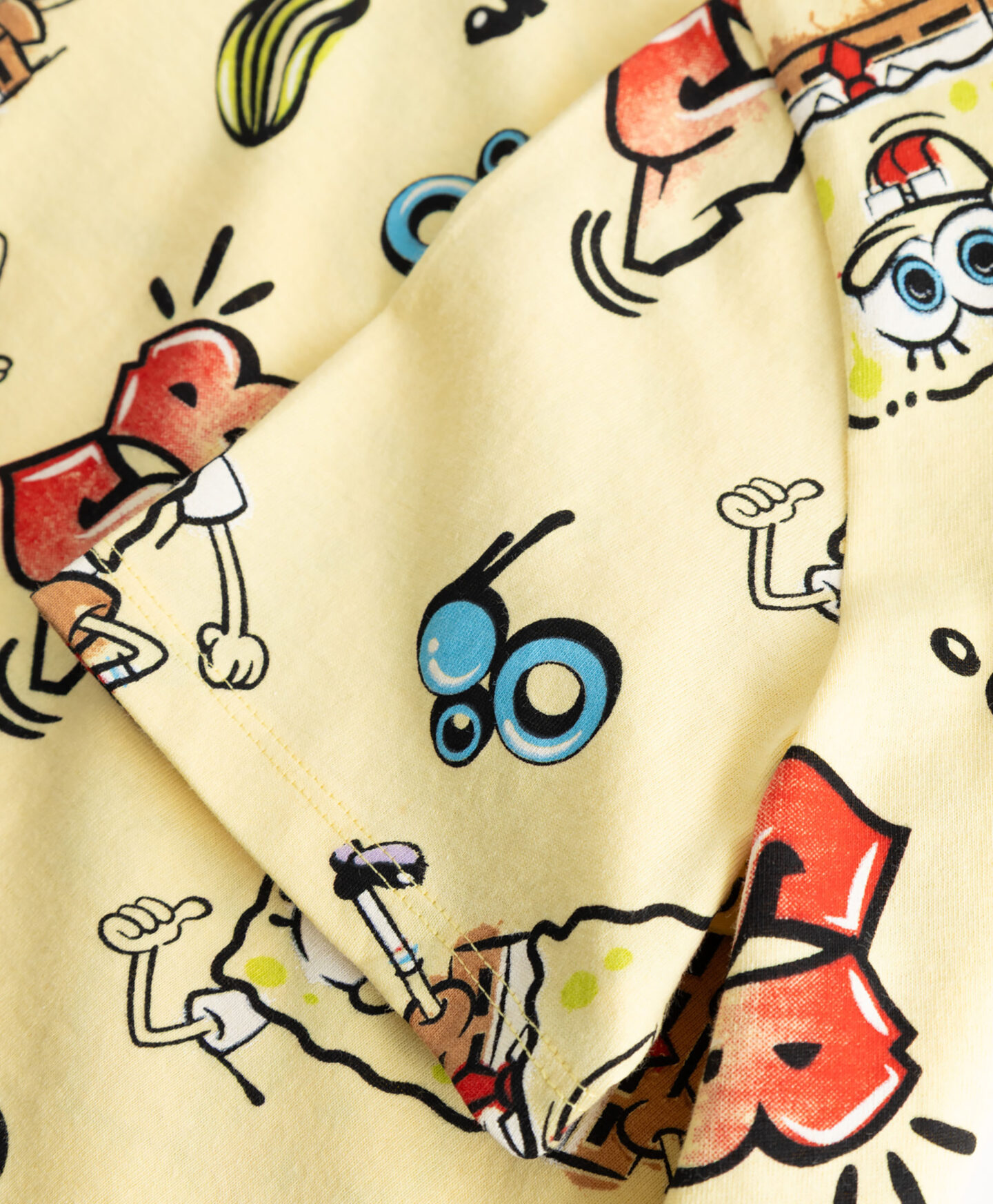 La camiseta de Bob Esponja 100% algodón con manga corta destaca por su gráfico de personajes icónicos. Funciona tanto en looks con sudadera como en días cálidos por sí sola. El tejido transpirable es suave y agradable al tacto. Combina fácilmente con vaquero o pantalón deportivo.