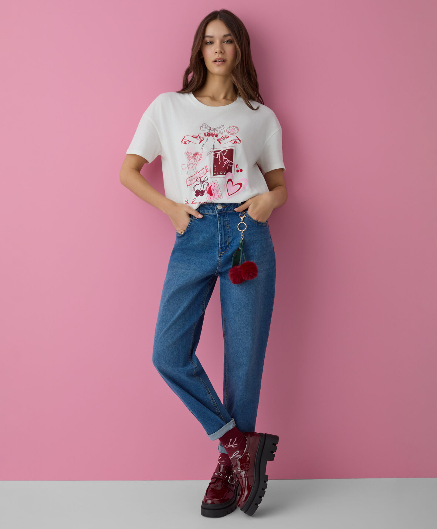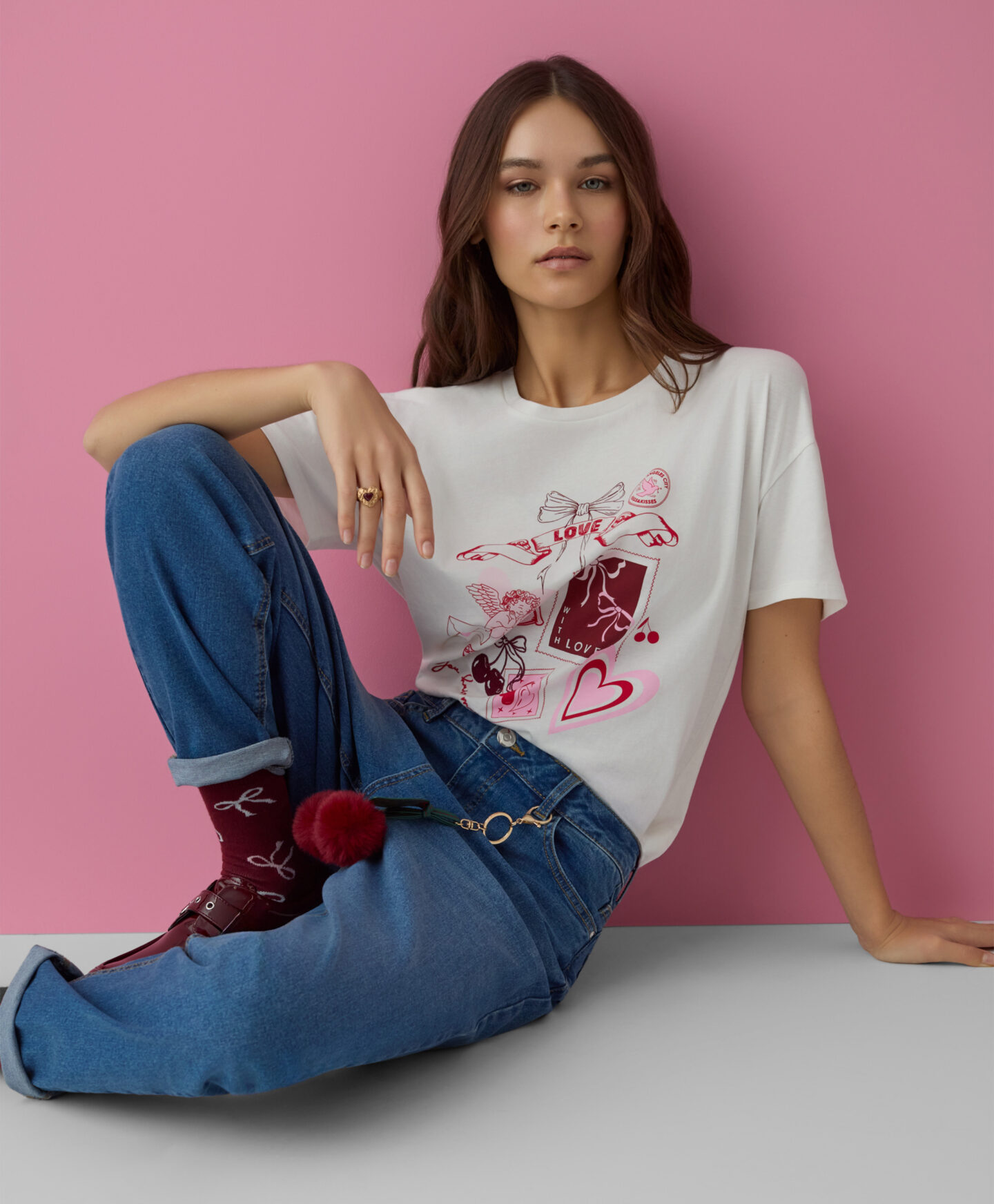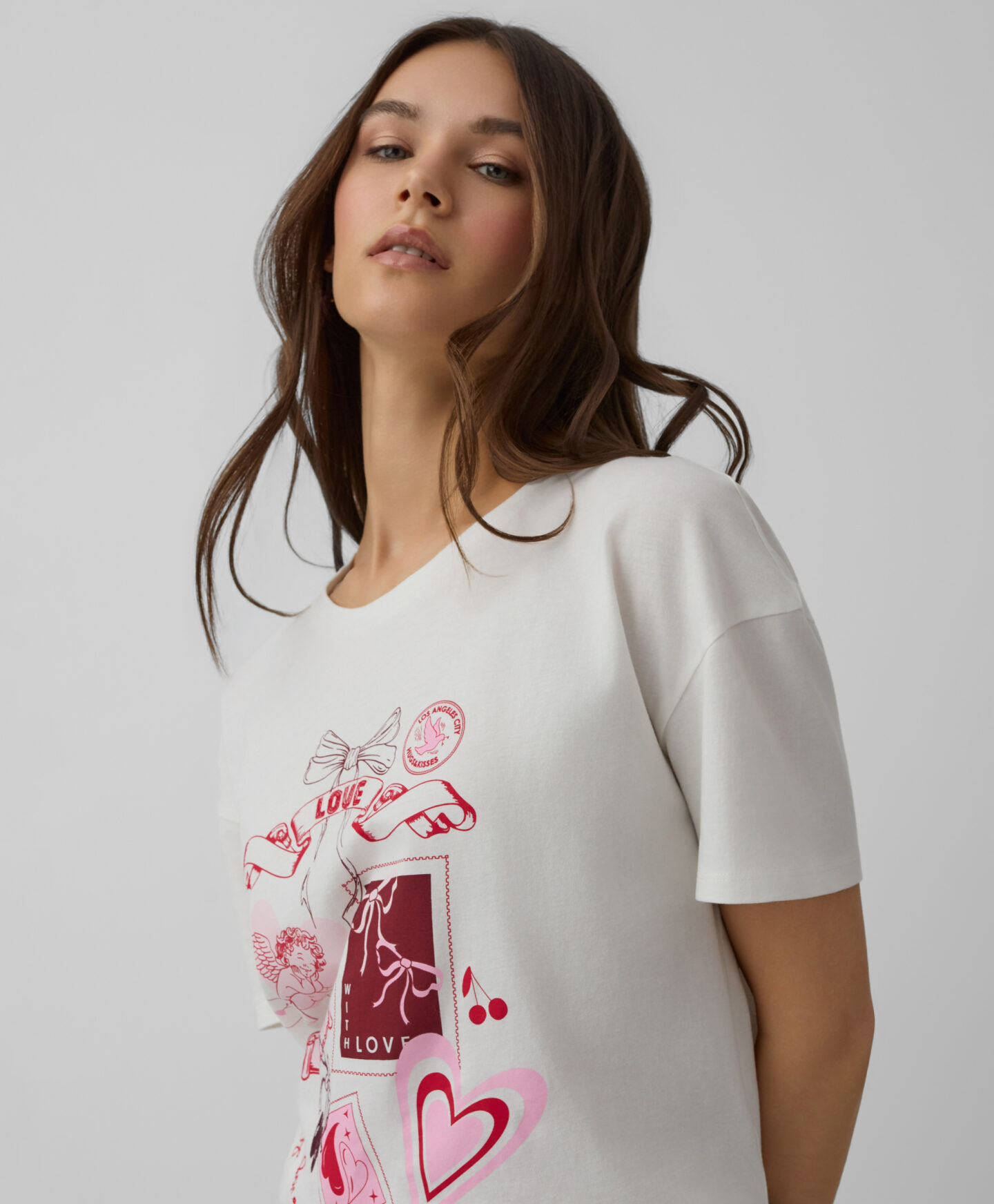 La camiseta de San Valentín de manga corta es adecuada para el día a día. El tejido 100% algodón garantiza comodidad. El diseño frontal añade un toque romántico y alegre. Resulta fácil de combinar en distintos looks.