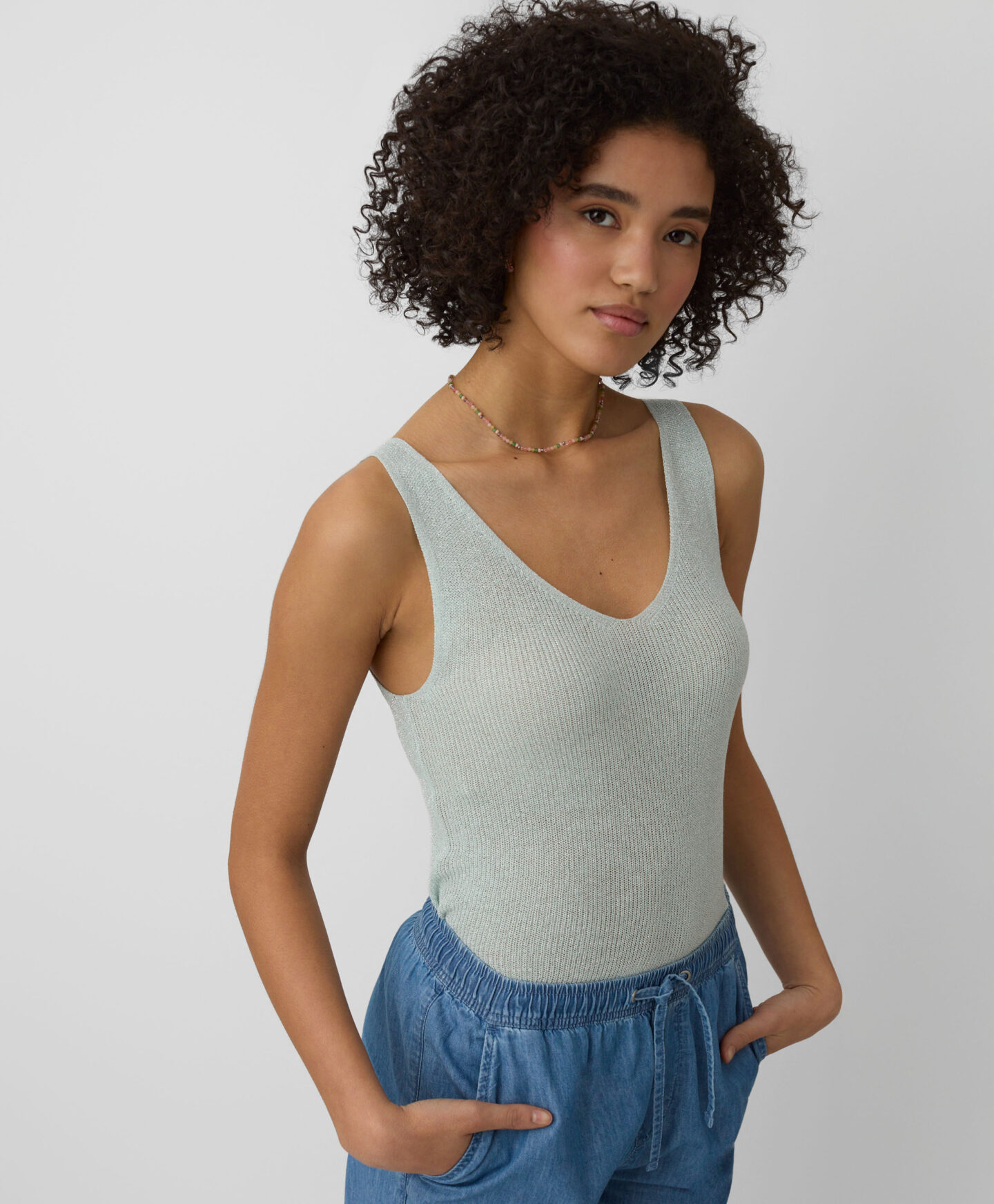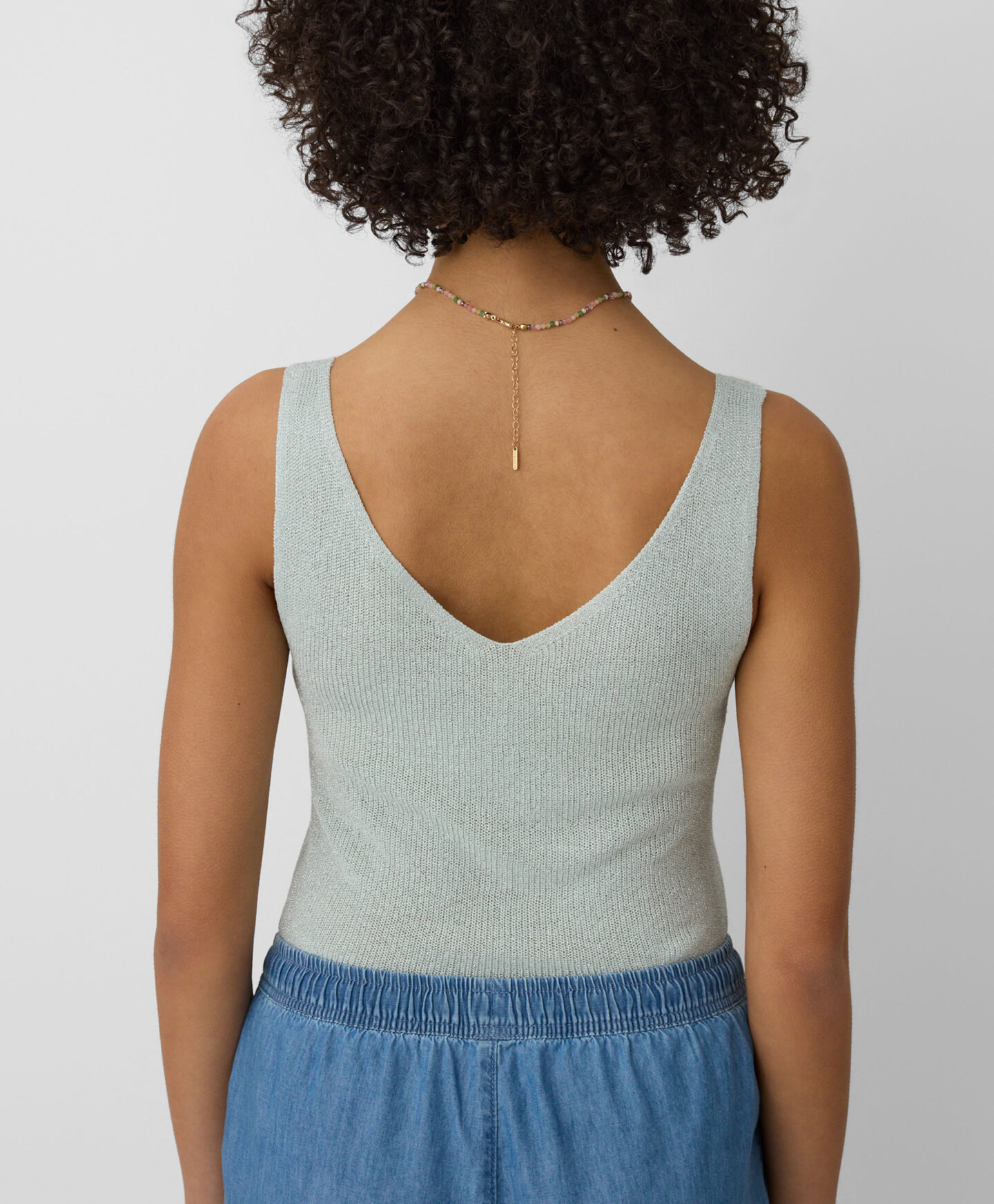 La camiseta de tirantes aporta un toque especial a cualquier look diario. Es ligera, transpirable y deja respirar la piel. El corte holgado garantiza comodidad y libertad de movimiento. Combina perfectamente con pantalón elegante o falda.