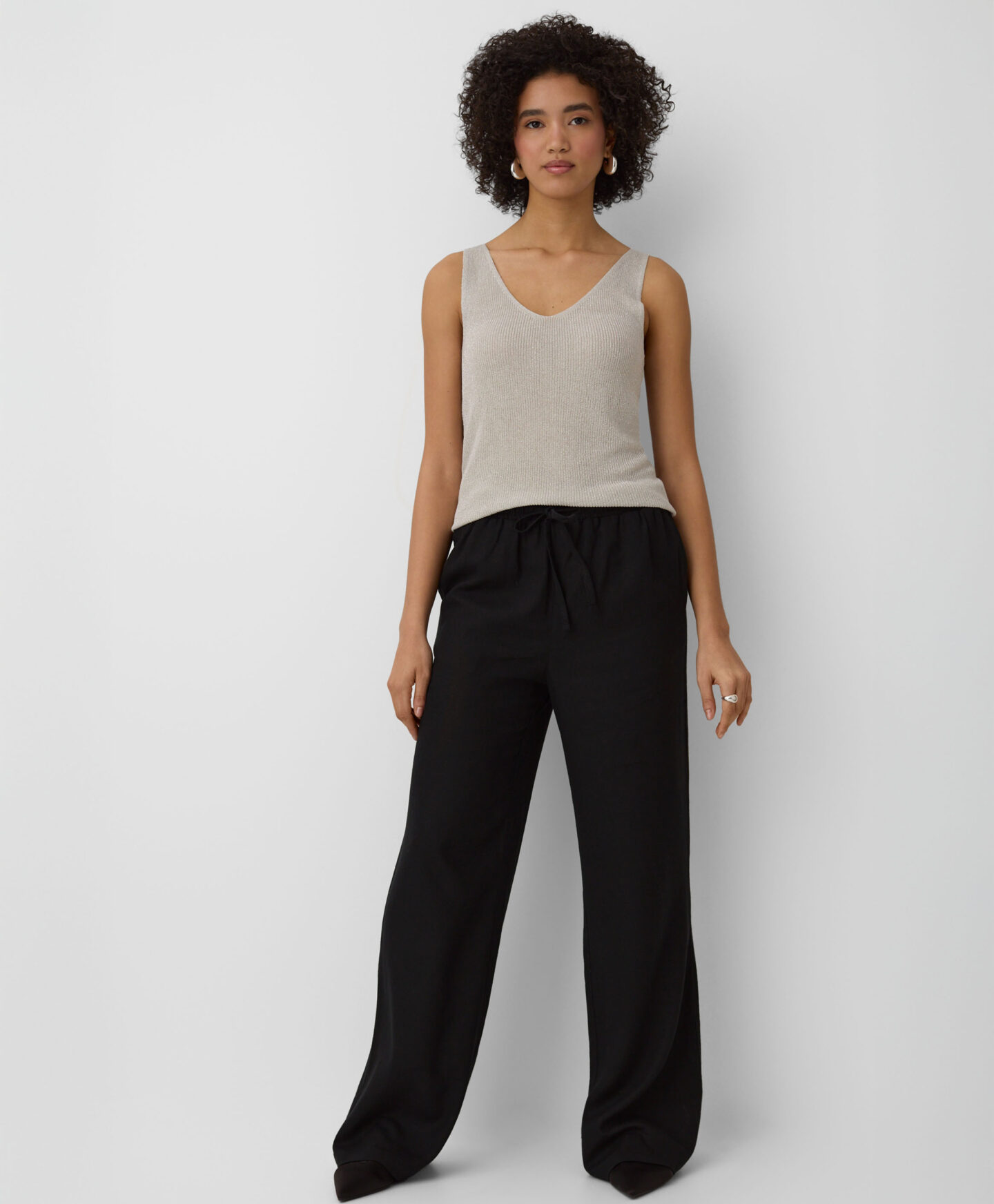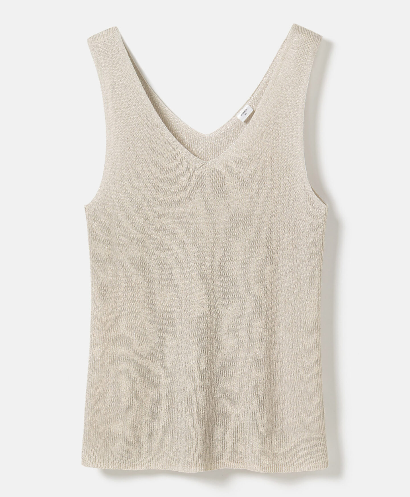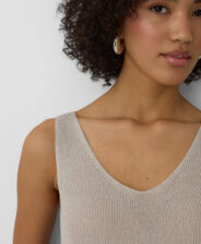 La camiseta de tirantes aporta un toque especial a cualquier look diario. Es ligera, transpirable y deja respirar la piel. El corte holgado garantiza comodidad y libertad de movimiento. Combina perfectamente con pantalón elegante o falda.