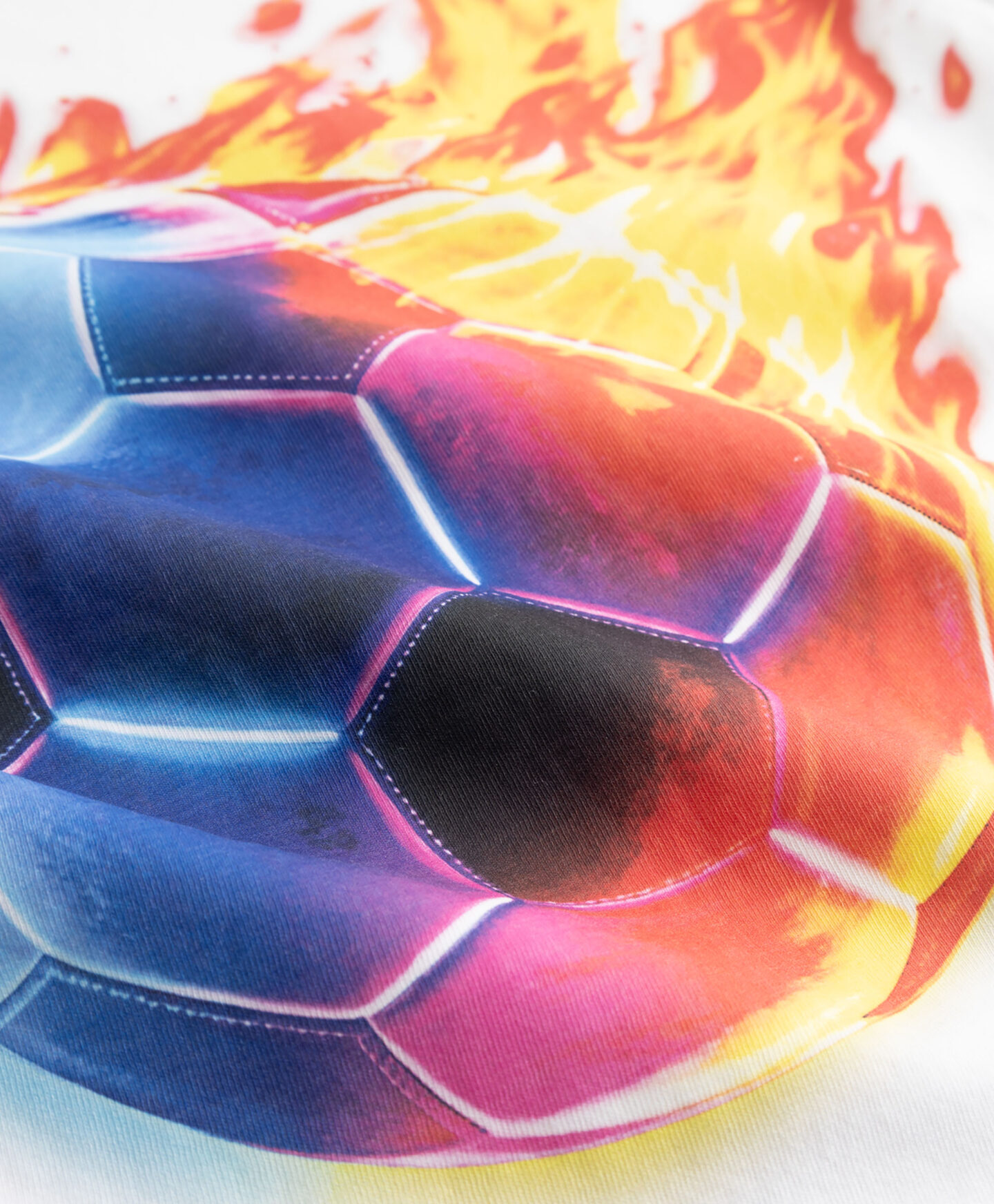 La camiseta fútbol 100% algodón es ideal para un estilo activo y desenfadado. Tiene mangas cortas y un diseño dinámico en el frontal. Su tejido 100% algodón es transpirable y suave, proporcionando comodidad durante todo el día. Combina fácilmente con vaqueros o pantalón deportivo.
