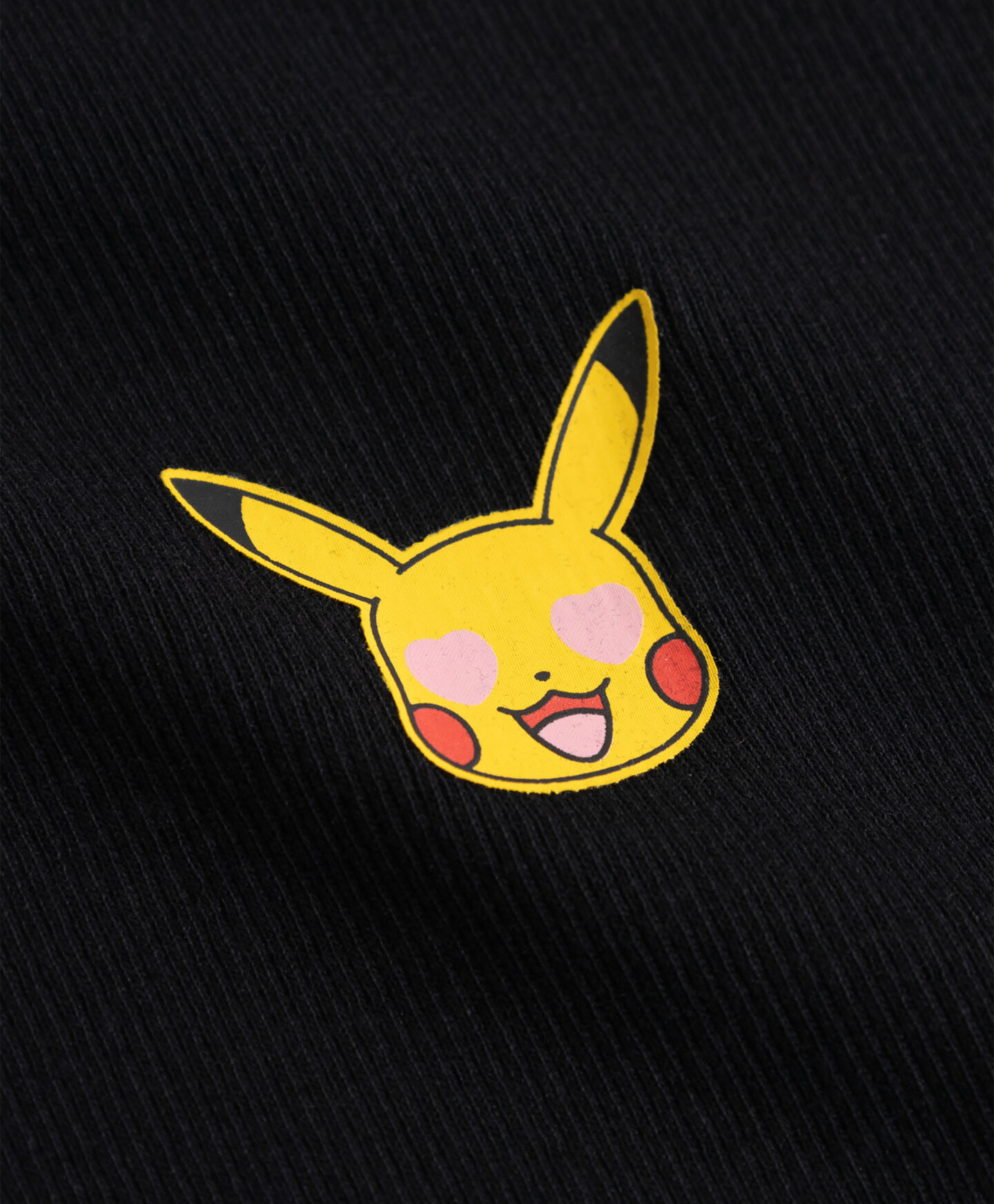 La camiseta con alto contenido en algodón de Pokémon es perfecta para fans de la saga. El color negro neutro permite combinarla fácilmente con vaqueros o pantalones de chándal. El pequeño estampado de Pikachu en la parte frontal aporta un detalle llamativo.