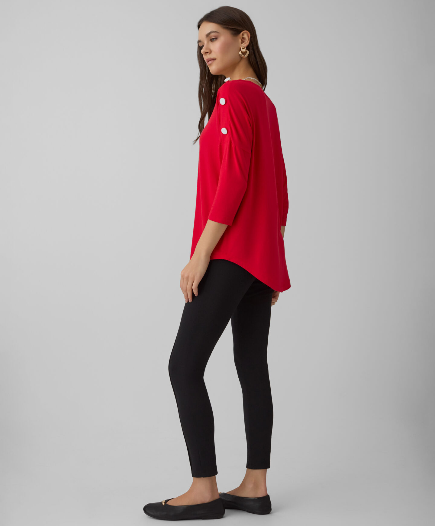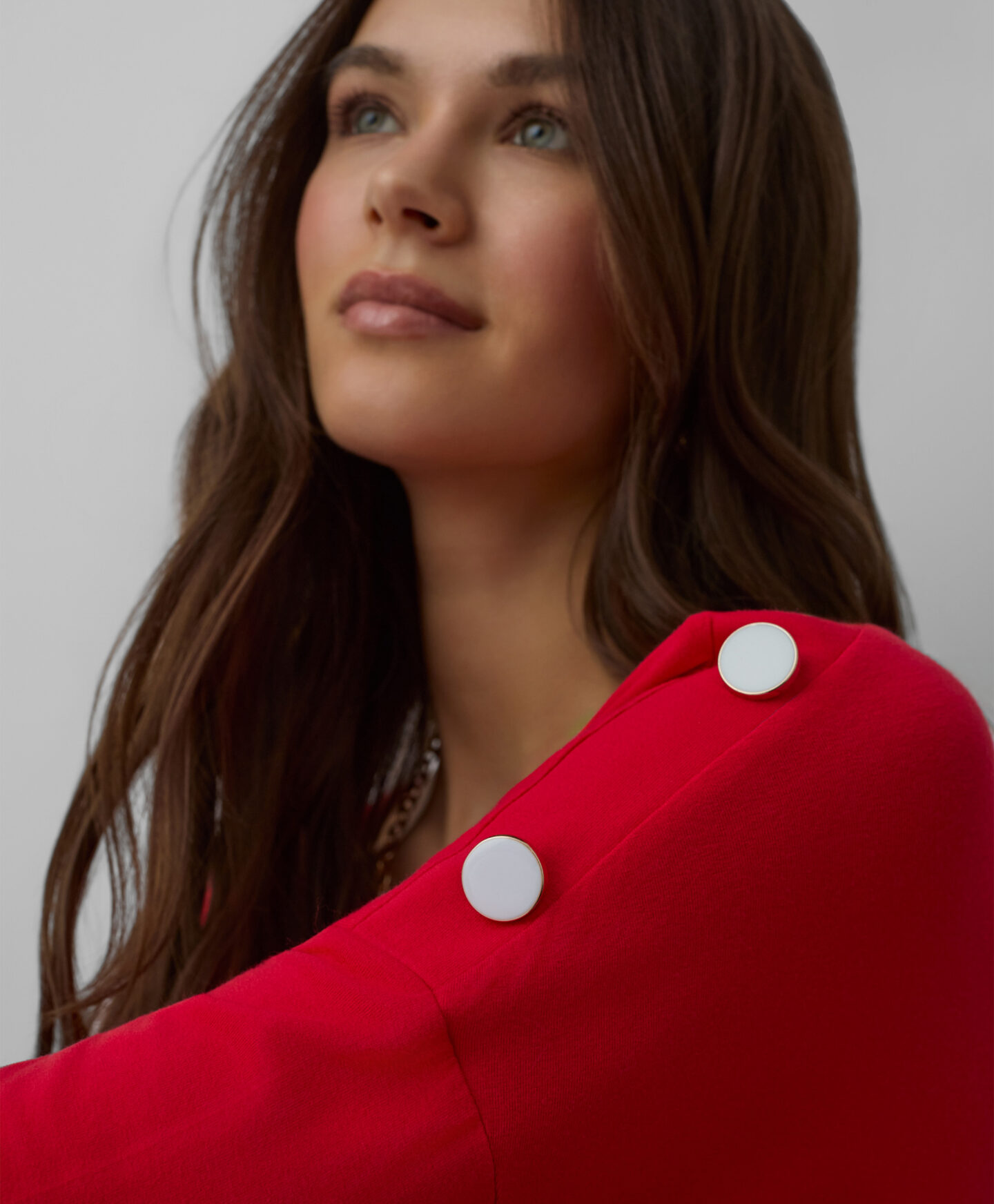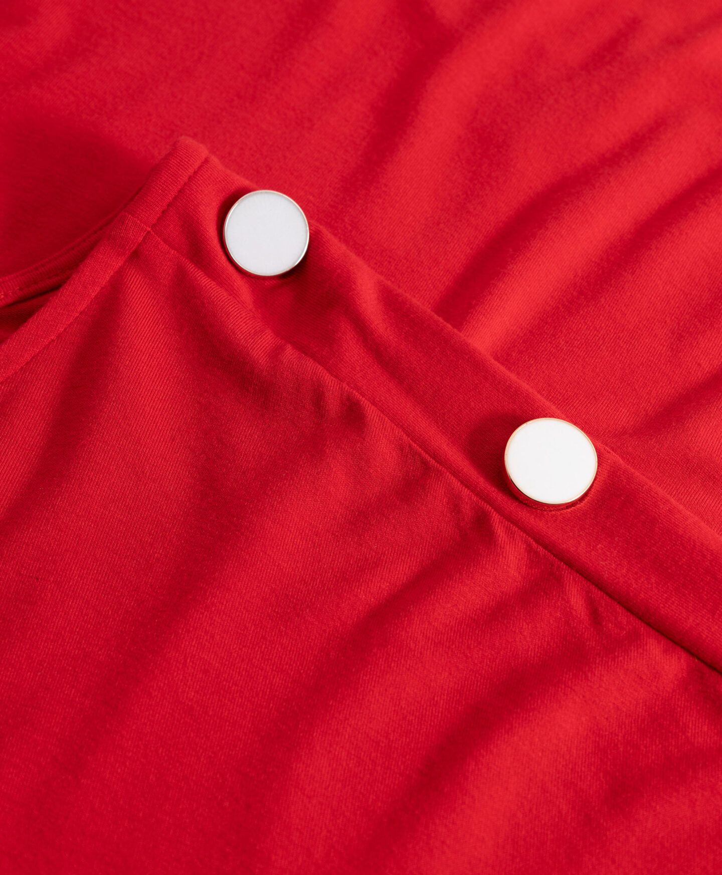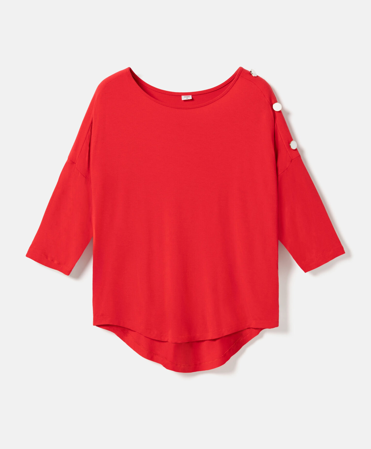 La camiseta roja con alto contenido en viscosa une estilo y comodidad. El corte suelto y el color intenso encajan en cualquier armario. Resulta adecuada para el día a día, el trabajo o planes especiales. Disponible en dos colores.