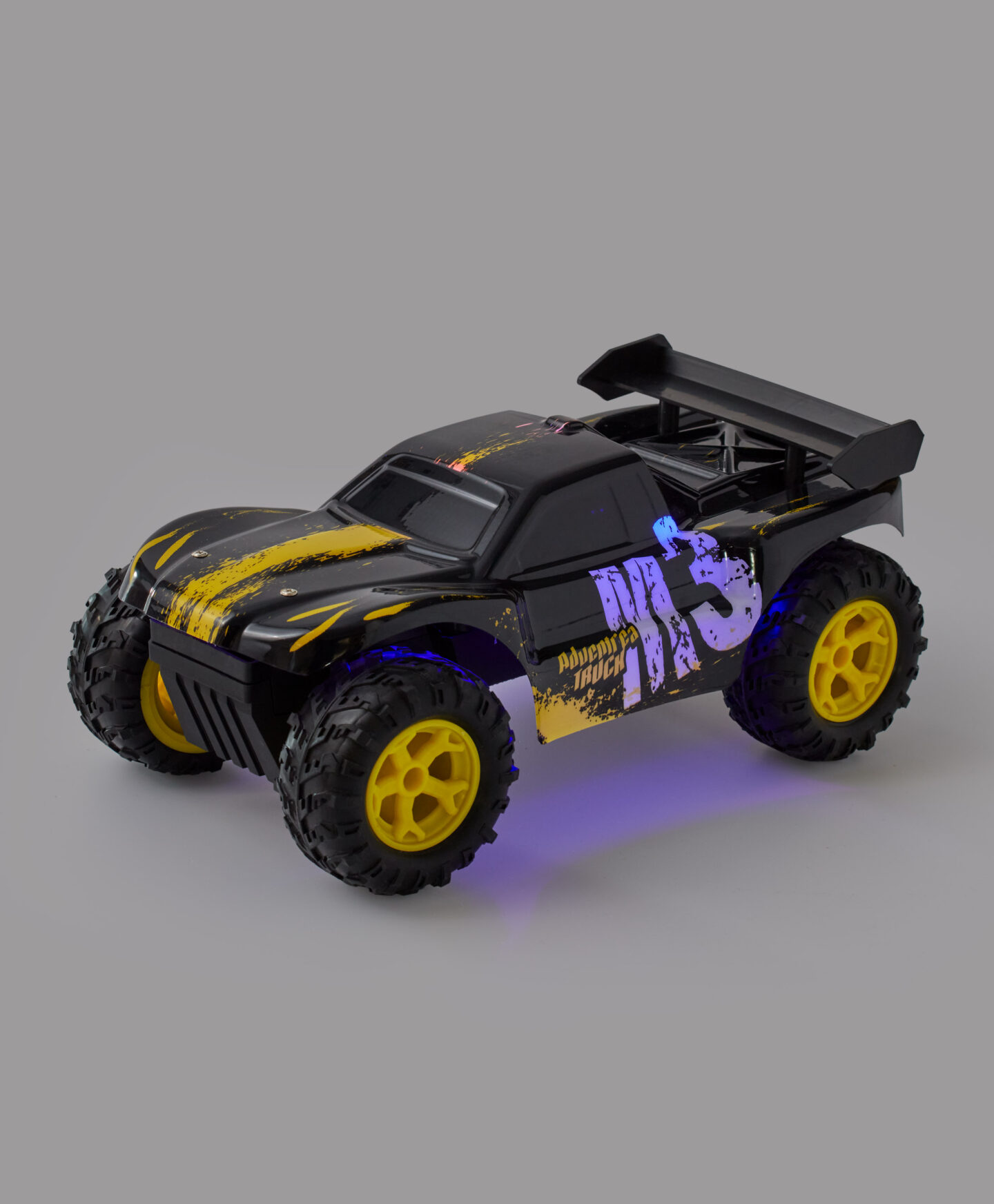 Este coche de juguete con ruedas grandes ofrece una aventura llena de diversión. Sus grandes ruedas permiten moverse fácilmente por distintos tipos de superficie, mientras que los elementos luminosos llaman la atención y crean un efecto WOW. El mando a distancia enseña a los pequeños precisión, coordinación y reflejos, además de potenciar sus habilidades motoras. Es perfecto para jugar en casa o al aire libre, recomendado para niños a partir de 4 años.