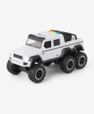 El coche todoterreno blanco destaca por su estructura robusta, ideal para distintos terrenos. Sus múltiples ruedas le dan un aspecto realista y resistente. Perfecto para quienes disfrutan del juego dinámico al aire libre. Incluye pilas.