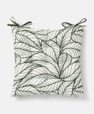 El cojín para silla con diseño de hojas y tejido impermeable, proporciona comodidad durante las reuniones al aire libre. Está fabricado con un material suave y agradable que convierte cualquier silla o banco en un lugar cómodo para sentarse. El diseño de hojas aporta un toque moderno a la decoración del balcón. El recubrimiento impermeable protege el cojín de la lluvia, el rocío y la suciedad, además de facilitar su limpieza. El cojín cuenta con cintas para sujetarlo a la silla. Disponibles dos modelos en la oferta.