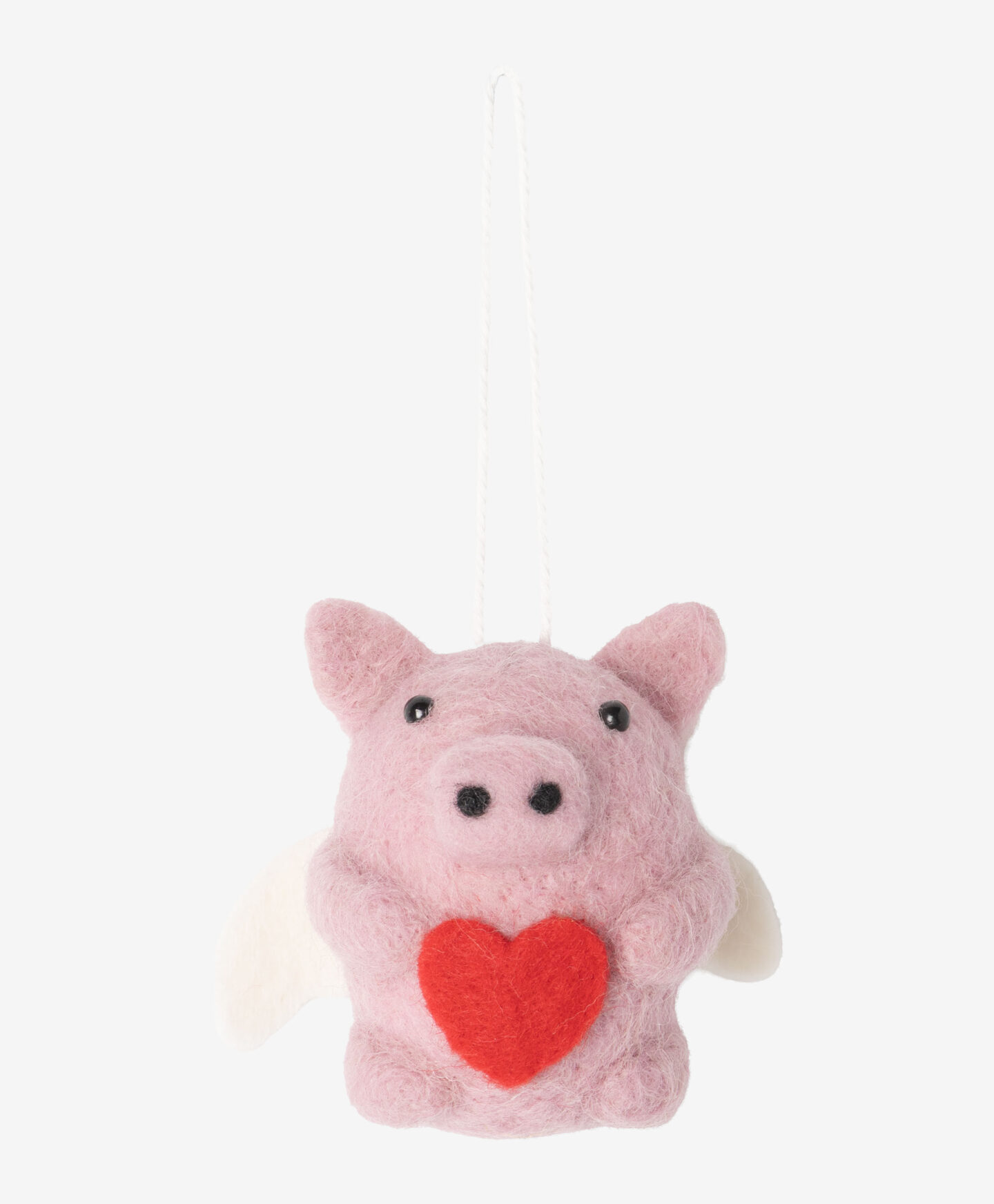 Colgante de fieltro con cerdito y corazón, una decoración pequeña y encantadora. Ideal para colgar en llaves, mochilas o estuches. Aporta color y transmite cariño. Disponible en dos diseños.