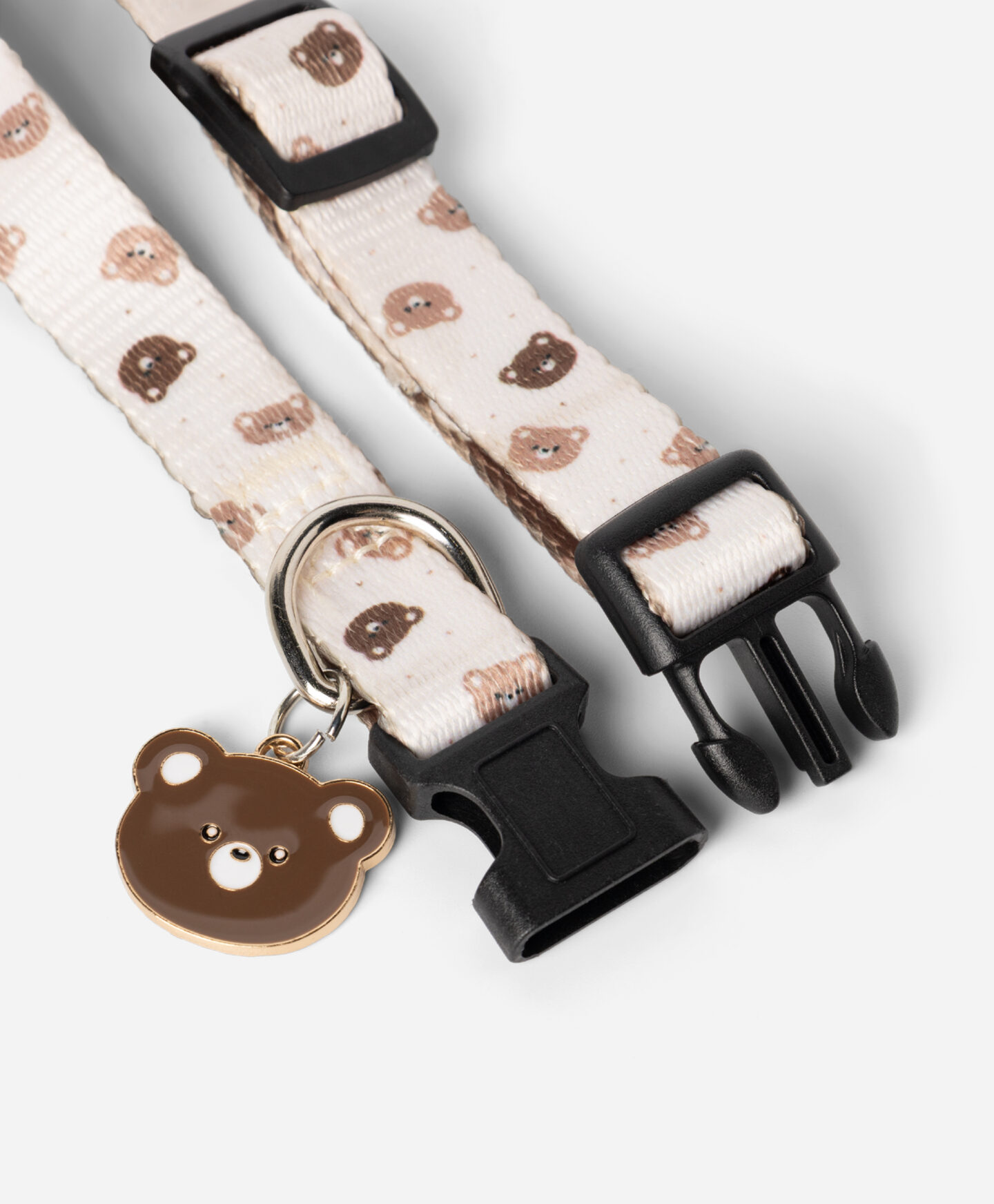 Collar para perro con placa en forma de oso en talla XS, ideal para los más pequeños. Fabricado con material resistente y suave al tacto. Cómodo y seguro para el uso diario. El detalle del oso le da un toque único. Disponible en varias tallas.