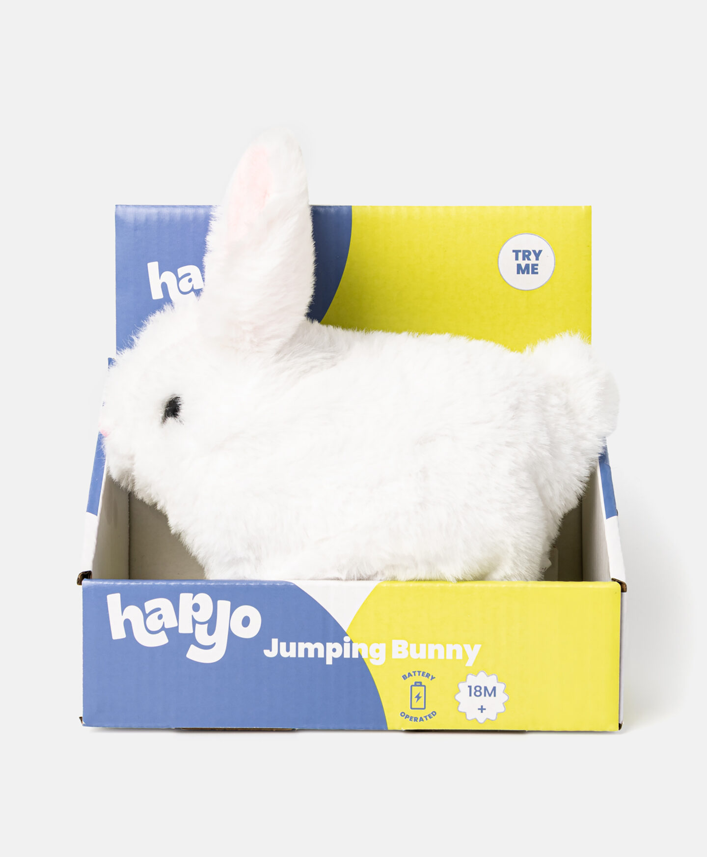 Conejito de juguete interactivo blanco que aporta diversión y entretenimiento. Responde al tacto con sonidos que estimulan el interés. Su acabado suave lo hace perfecto como compañero de juego diario. Recomendado a partir de 18 meses.