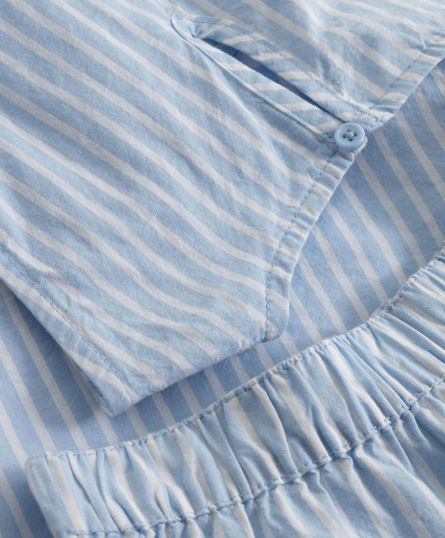 El conjunto 100% algodón es un clásico veraniego lleno de frescura. El estampado de rayas blancas y azules evoca el ambiente del mar y aporta un estilo atemporal. El pantalón corto con cintura elástica y el top cómodo permiten jugar y moverse con libertad. El tejido 100% algodón es transpirable, suave y agradable incluso para pieles sensibles. Ideal para el día a día o para un look de playa.