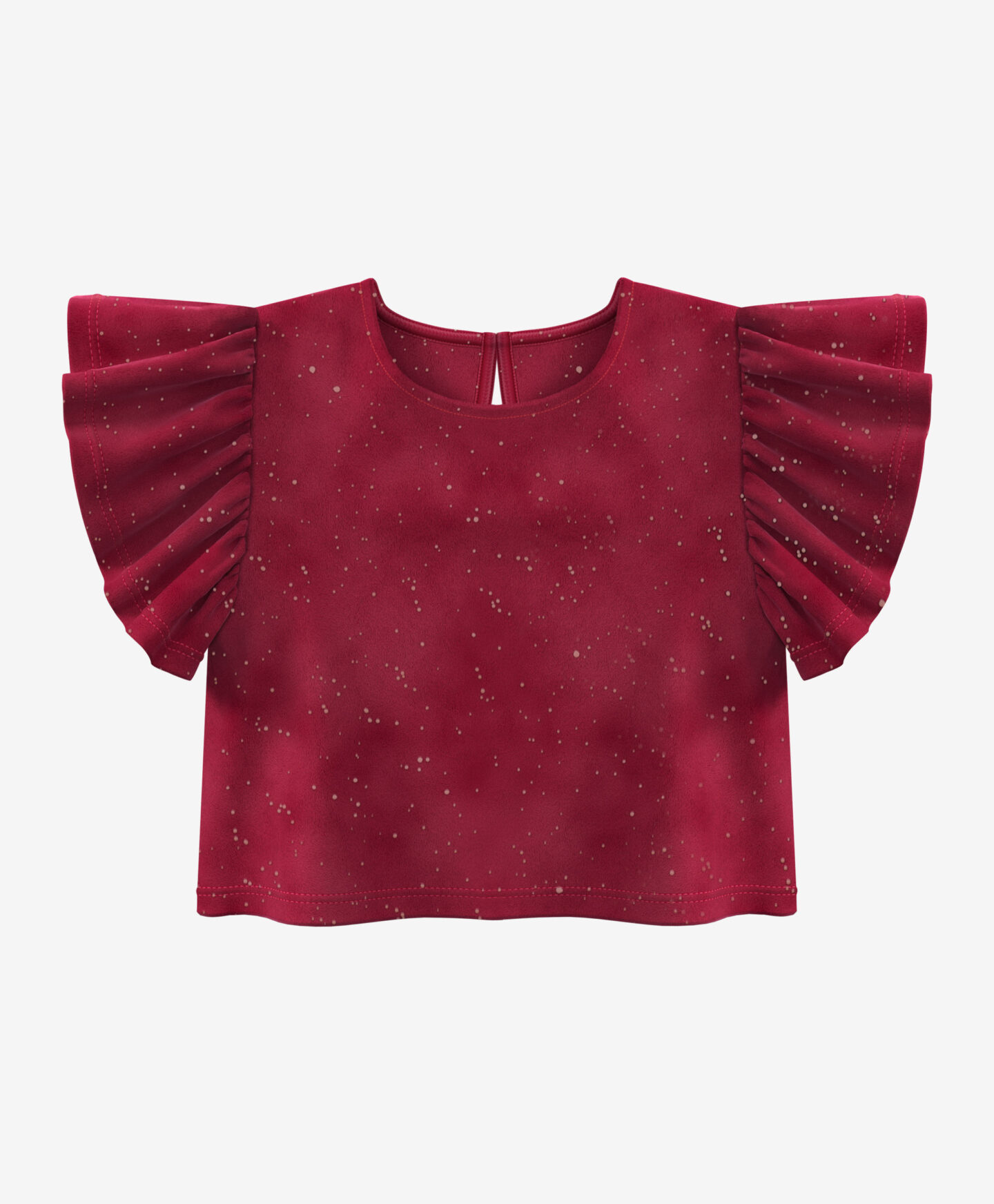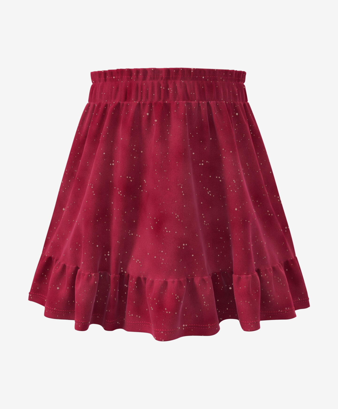 El conjunto de top y falda de terciopelo es una combinación perfecta. Los volantes en las mangas y en la falda aportan ligereza y movimiento. Ambas piezas se complementan creando un look armonioso y con estilo.