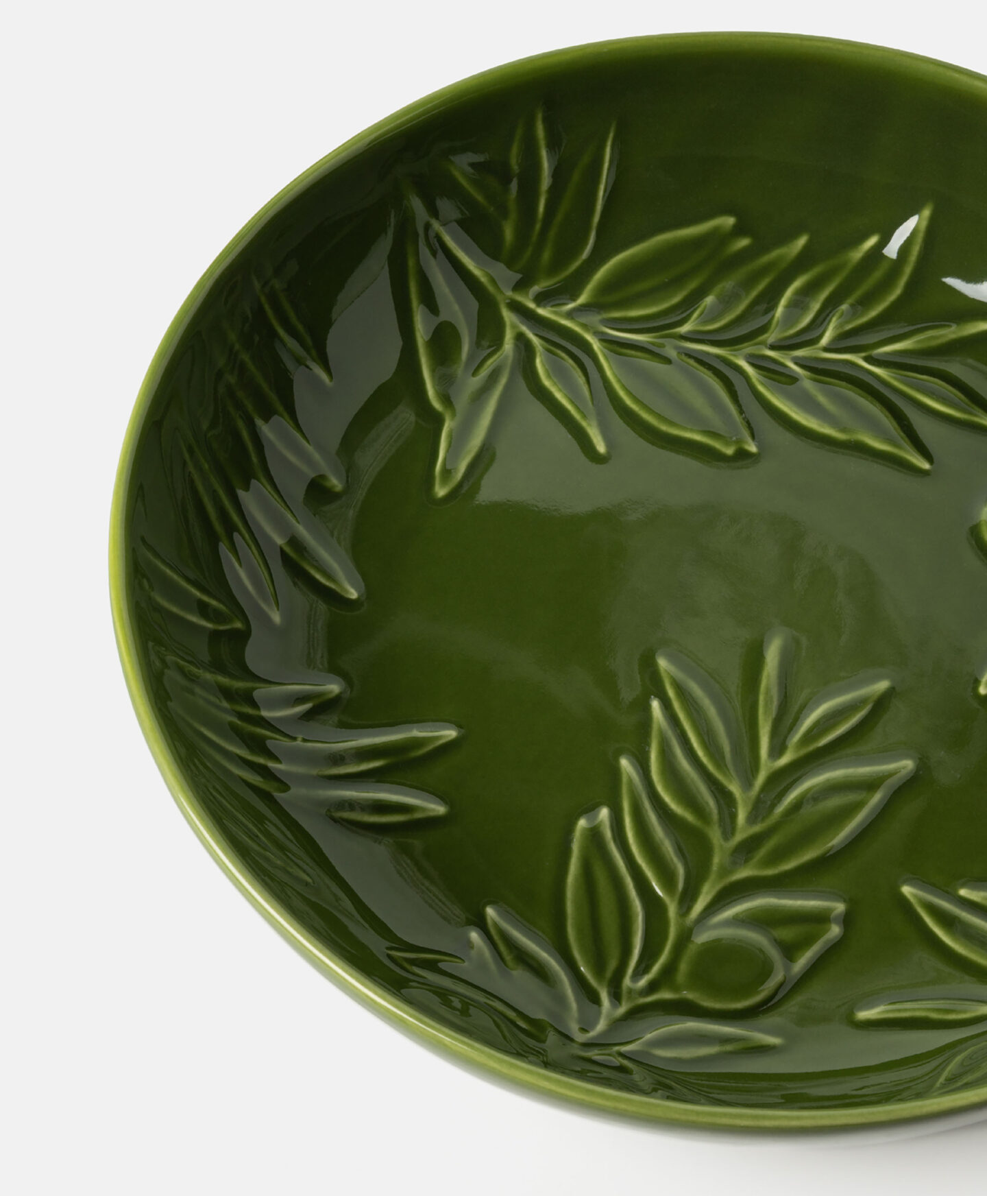 La ensaladera de cerámica destaca por su bonito tono verde y el relieve de rama de olivo. La cerámica es resistente a golpes y altas temperaturas, lo que la convierte en una opción fiable para el uso diario. Es perfecta para servir ensaladas, pasta o fruta. En la misma colección encontrarás más piezas a juego.