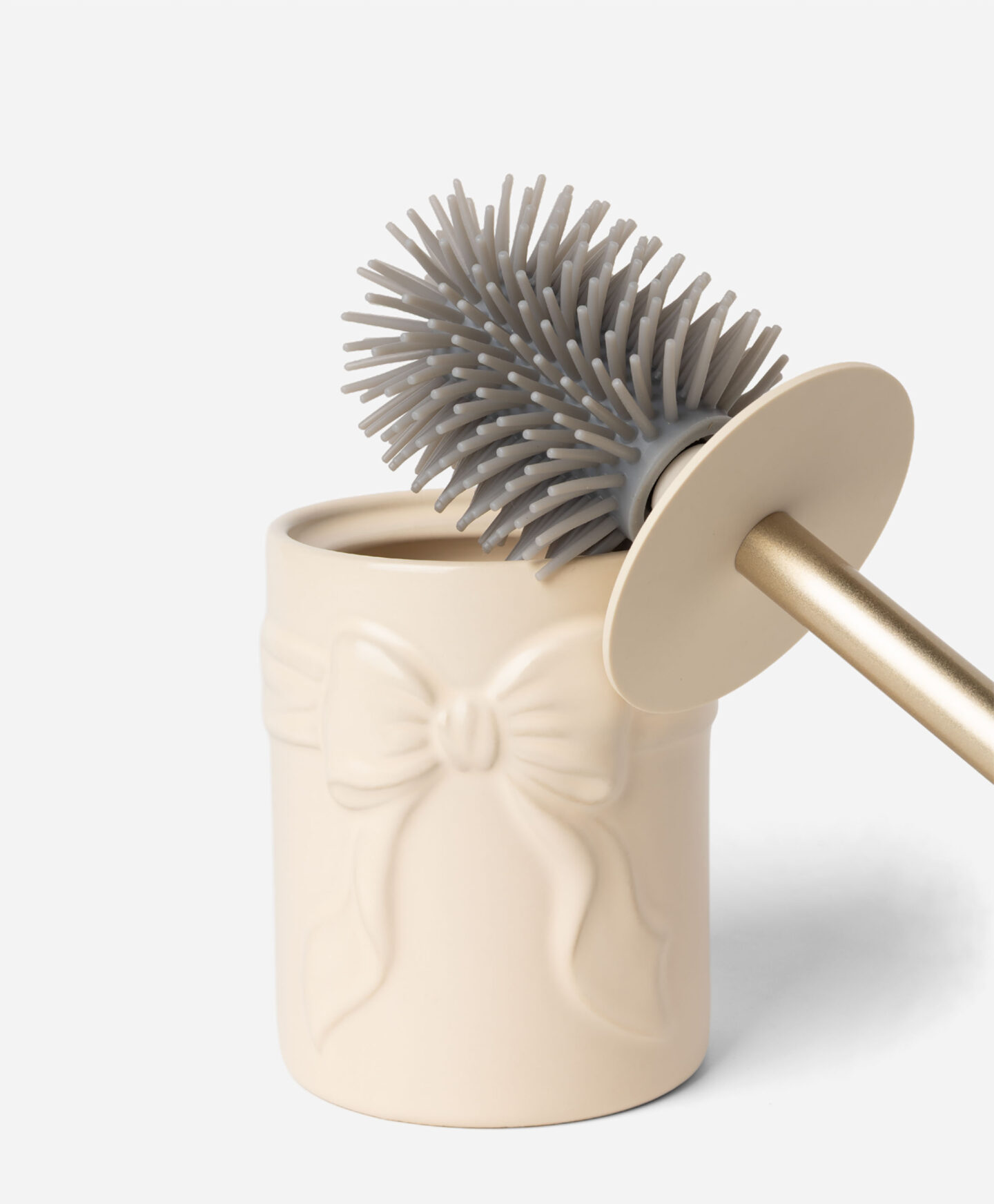 La escobilla de WC con lazo forma parte de un conjunto que incluye jabonera, dosificador de jabón y portacepillos de la última colección. Su acabado estético y diseño original encajan en distintos estilos de interior. Es fácil de limpiar y cómoda de usar gracias a su mango ergonómico.
