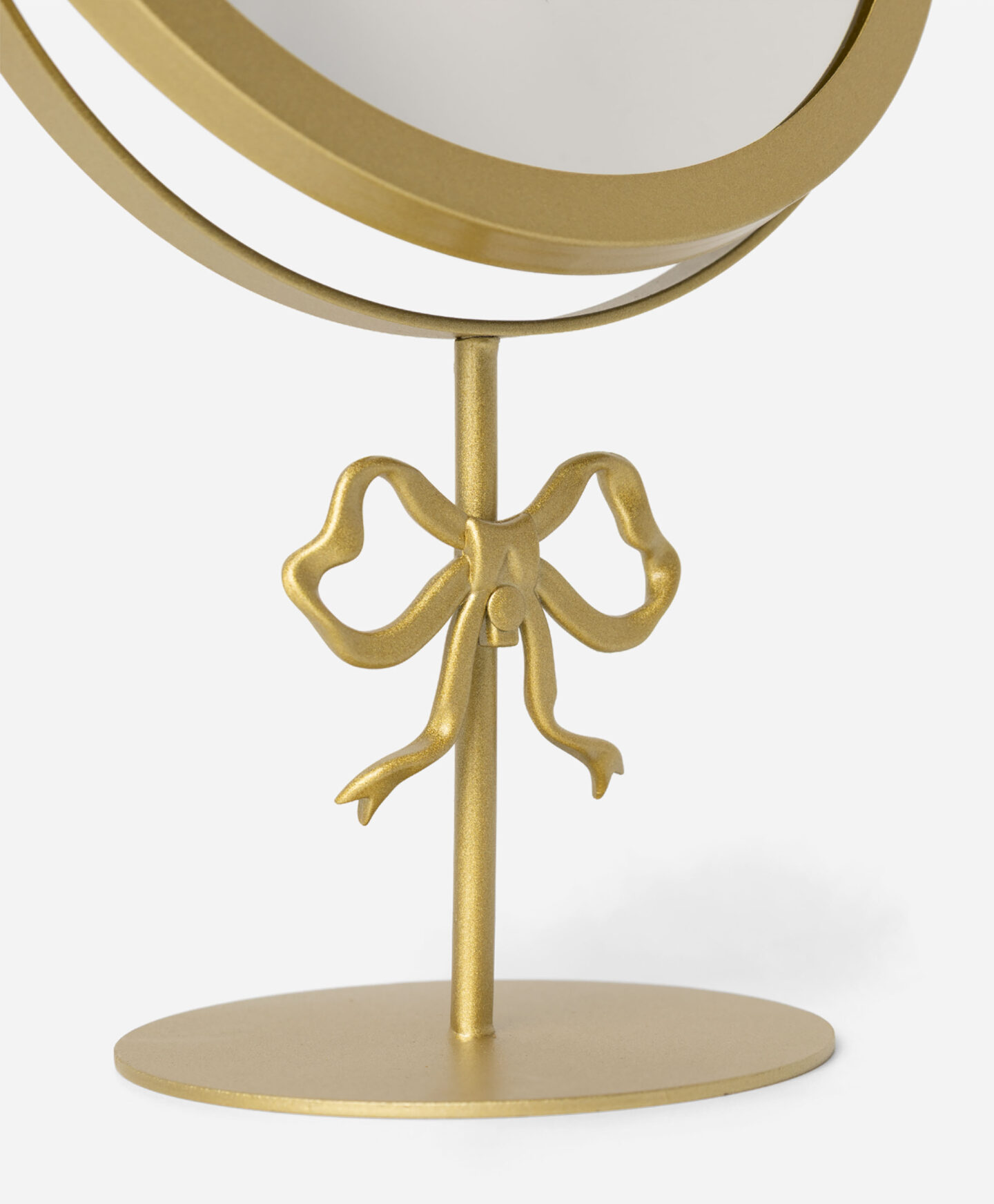 El espejo de pie con lazo es un elegante detalle decorativo que aporta un encanto especial al interior. El acabado dorado armoniza con el lazo decorativo y crea un efecto sofisticado. Ideal para el dormitorio, el baño o el tocador, facilita las rutinas diarias.
