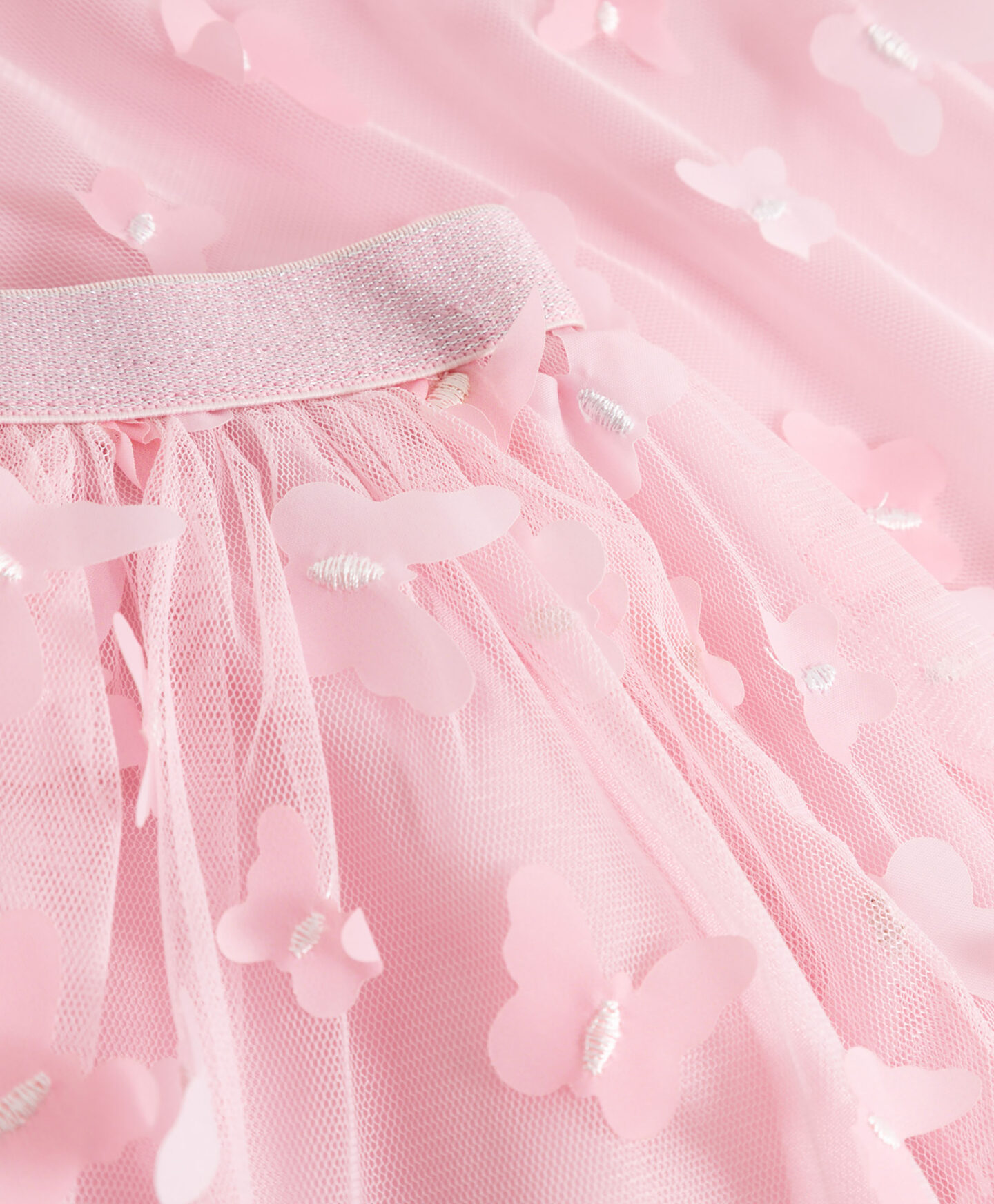 La falda de tul con mariposas en 3D añade un toque ligero y especial al look. El tul aporta volumen y movimiento. La cintura elástica garantiza un ajuste cómodo. Las mariposas bordadas crean un efecto decorativo. Combina bien con mallas o leotardos y es perfecta para días más cálidos.