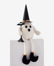 El fantasma sentado es una decoración encantadora para tu hogar este Halloween. Sus largas piernas colgantes hacen que quede ideal sobre una estantería o una silla. Disponible en dos versiones.