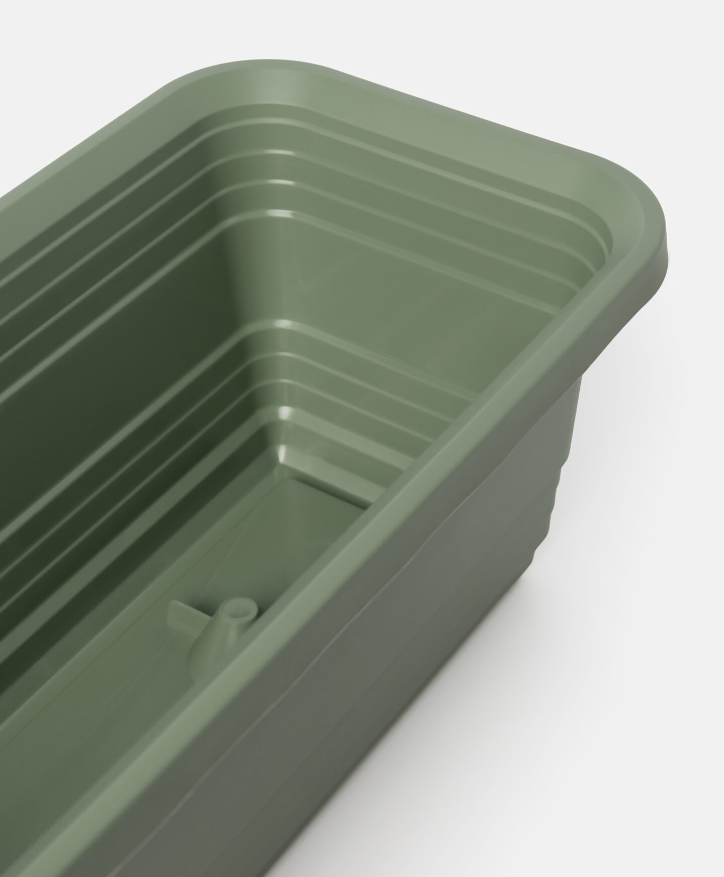 La jardinera rectangular verde es una solución ideal para quienes desean cultivar plantas en el balcón, la terraza o el jardín. Su forma alargada permite colocar varias plantas o una planta colgante de mayor tamaño, aprovechando al máximo el espacio disponible. Fabricada con material resistente, es duradera, ligera y apta para soportar las condiciones meteorológicas.