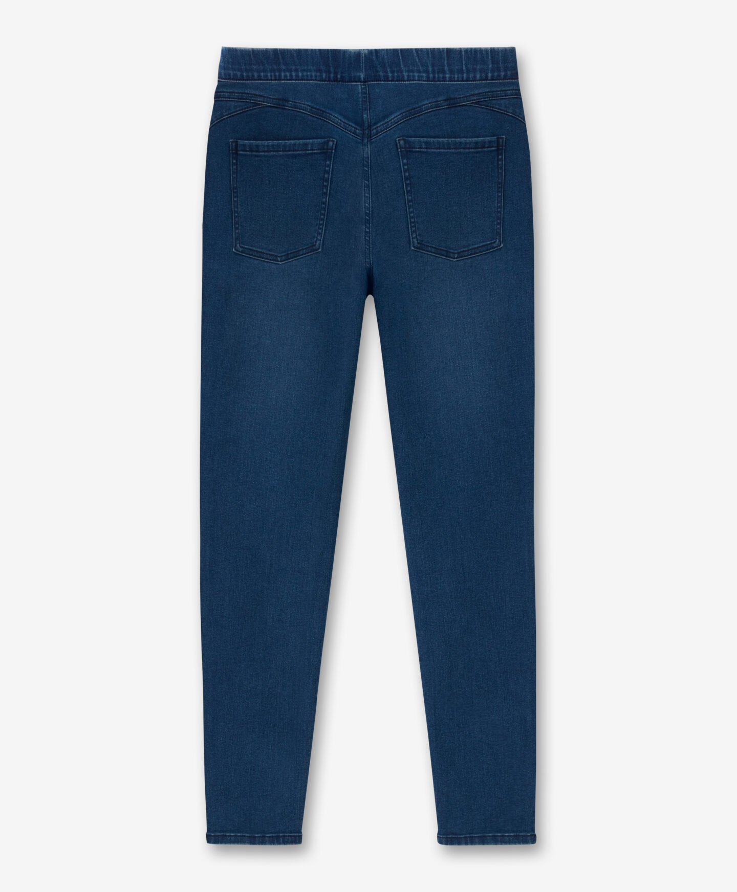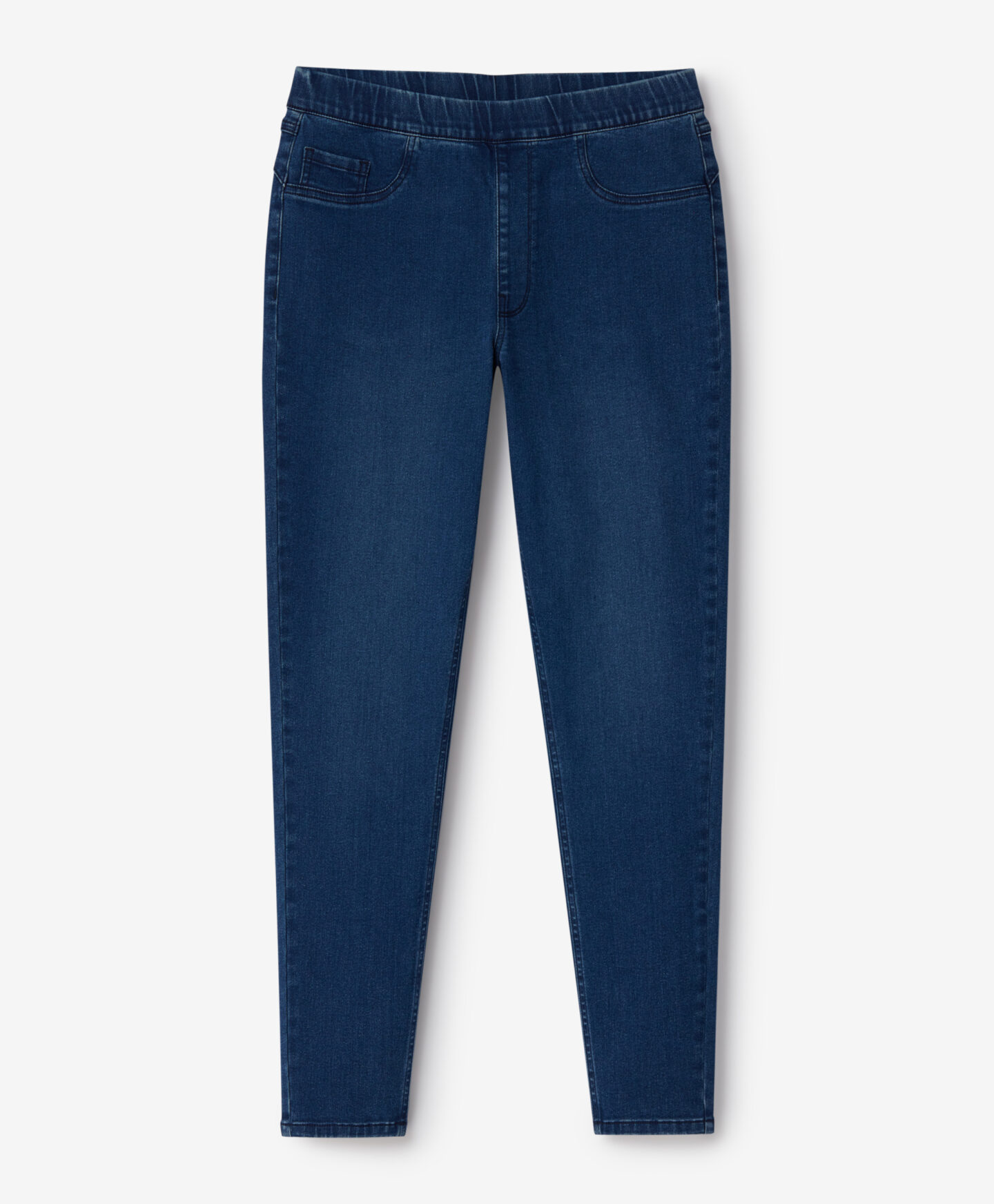 Este jegging azul combina la comodidad de un legging con el estilo de un vaquero clásico. Es elástico y se ajusta perfectamente a la silueta. Perfecto para el día a día, ofrece estilo y confort a la vez. Su versatilidad permite combinarlo con looks tanto clásicos como deportivos. También está disponible en otros colores.